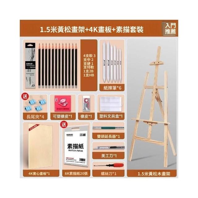 木質畫架 美術生專用油畫架 4k畫板素描寫生支架式展示架 抽屜畫架 可折疊便攜兒童桌面美術繪畫架子 素描工具套裝