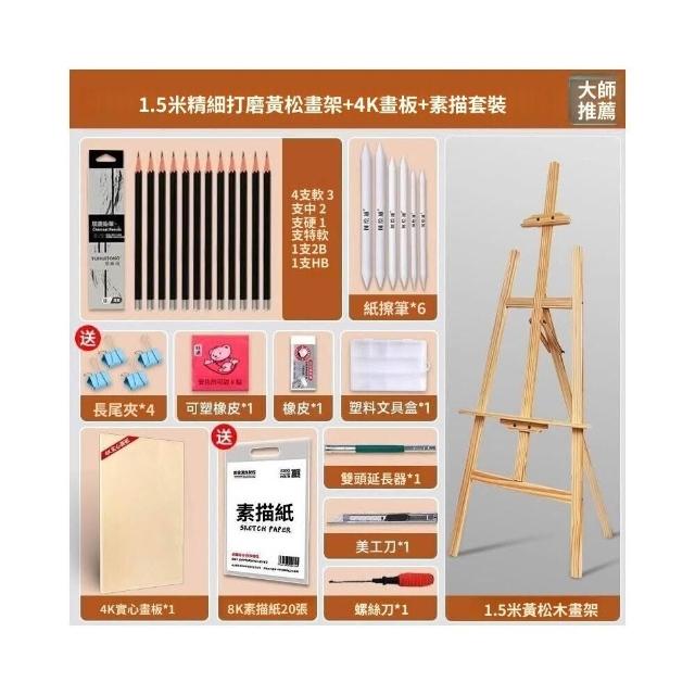 木質畫架 美術生專用油畫架 4k畫板素描寫生支架式展示架 抽屜畫架 可折疊便攜兒童桌面美術繪畫架子 素描工具套裝