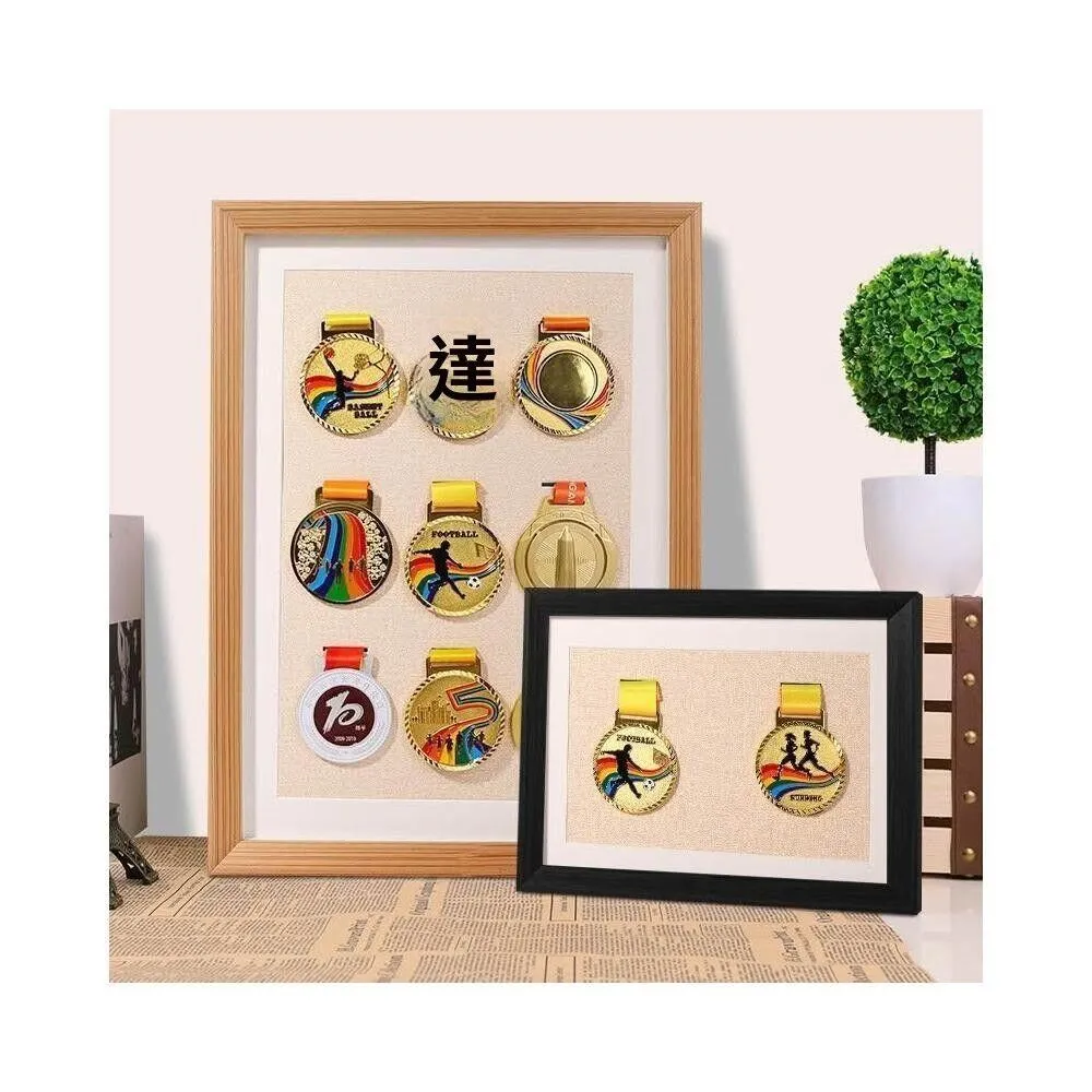画框相框马拉松奖牌展示架 实木收纳运动金牌体育奖章挂墙中空KEEP 馬拉松獎牌展示框 獎章收納盒 獎牌展示架 獎牌收納