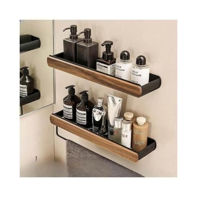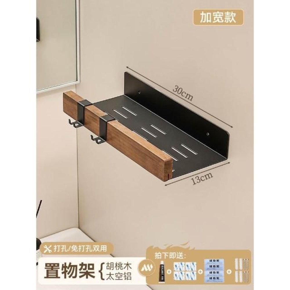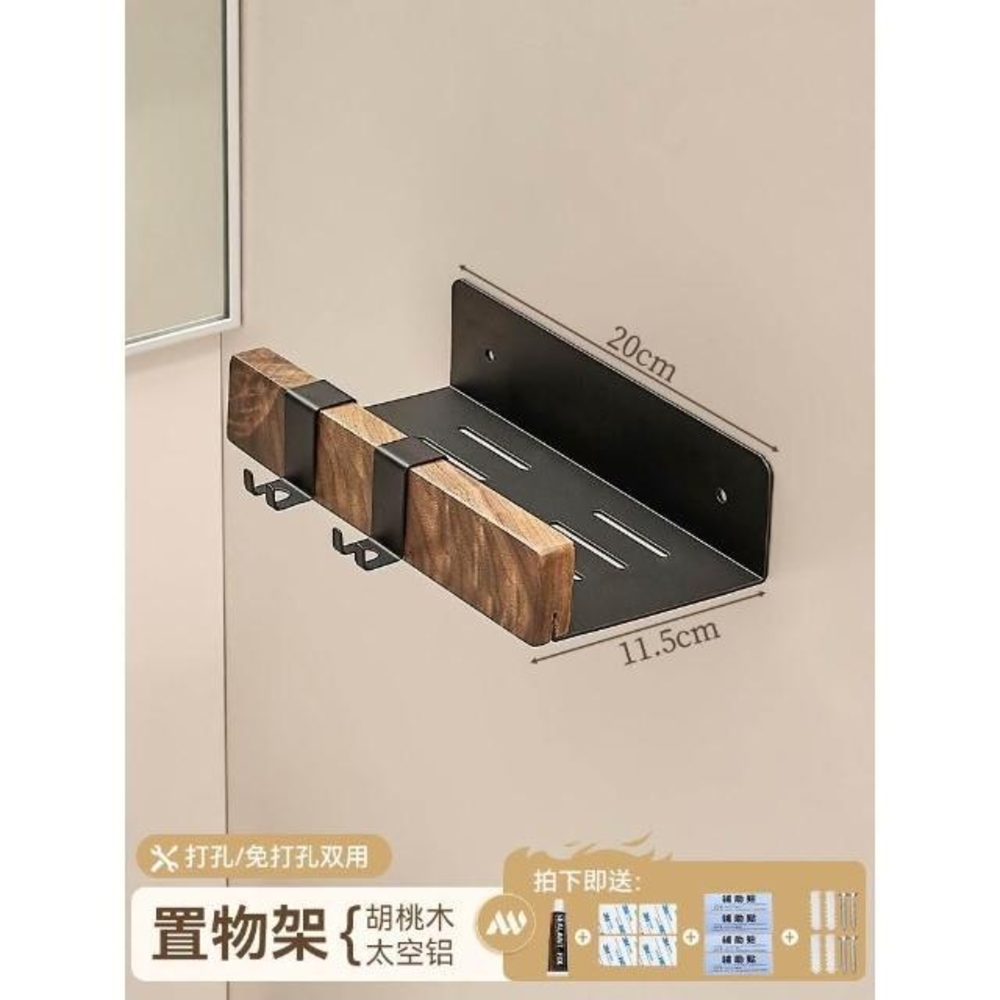 胡桃木卫生间置物架 浴室厕所洗漱洗手台洗手间墙上免打孔收纳挂架 胡桃木浴室置物架 衛生間收納架 廁所洗手檯收納架
