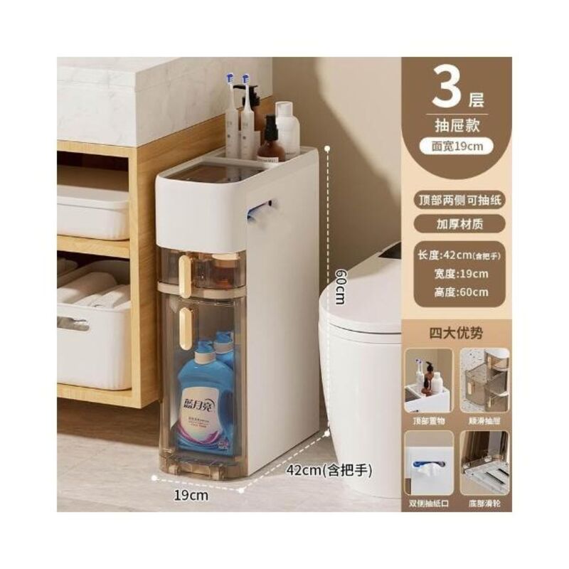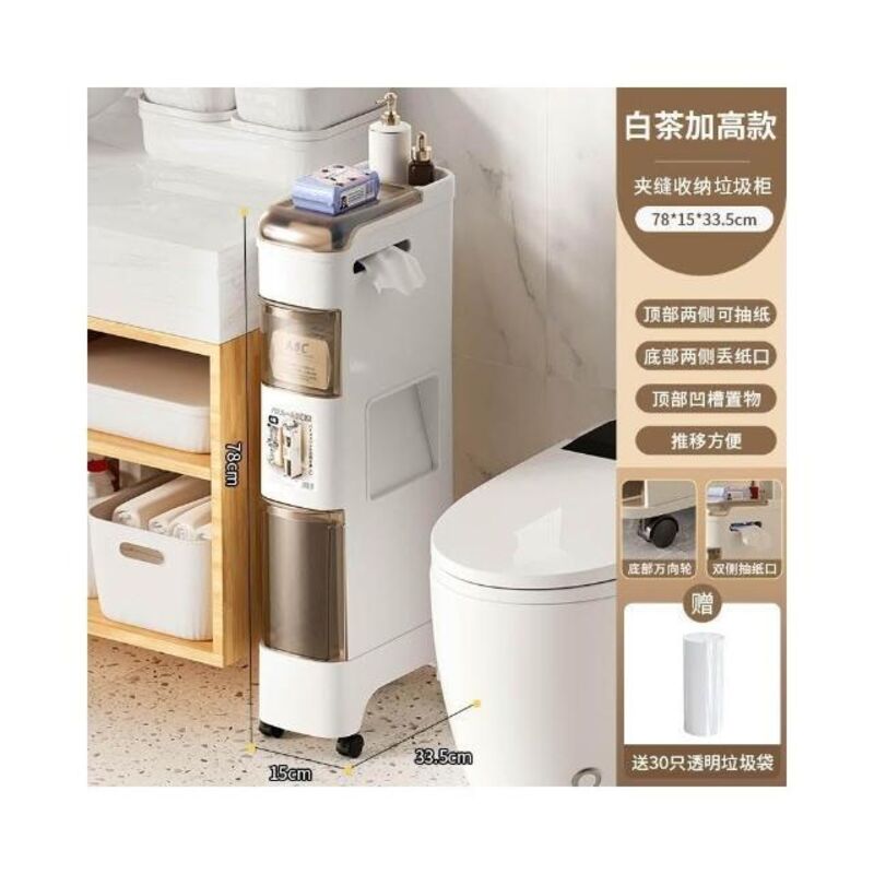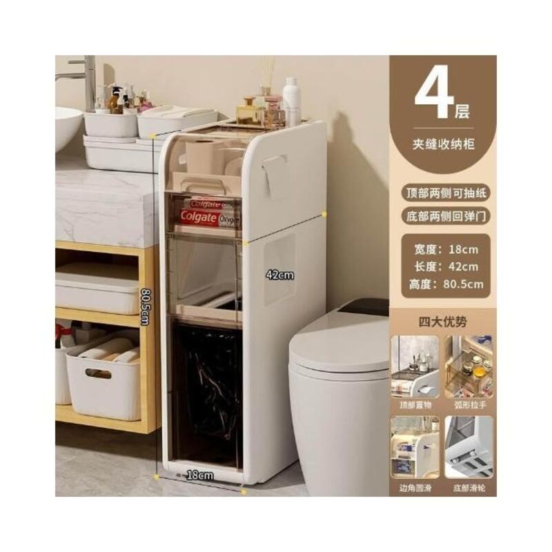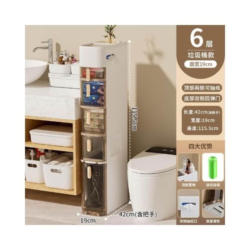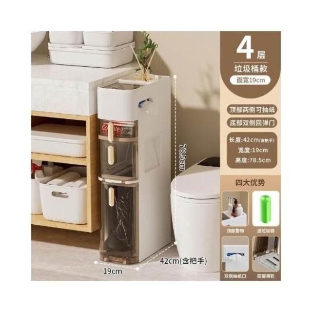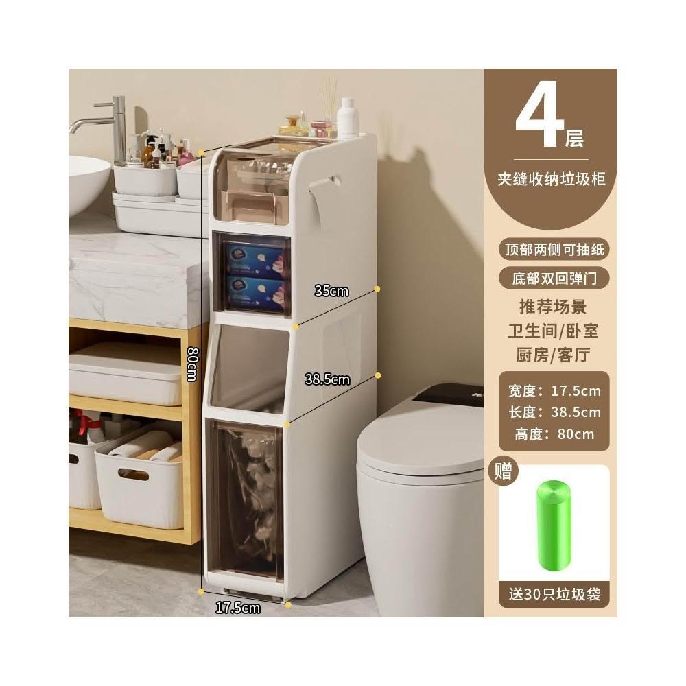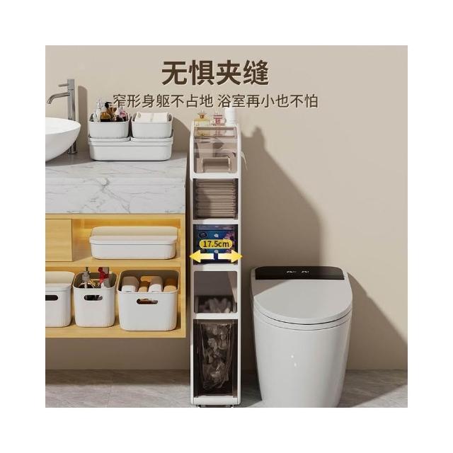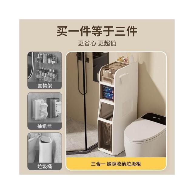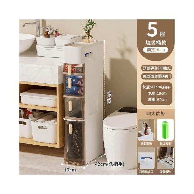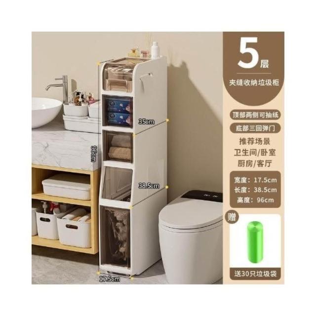 浴室夹缝柜 卫生间置物架 洗手间收纳柜 马桶储物柜 带垃圾桶纸篓 浴室收納櫃 浴室置物櫃 衛生間浴室收納櫃 夾縫收納櫃