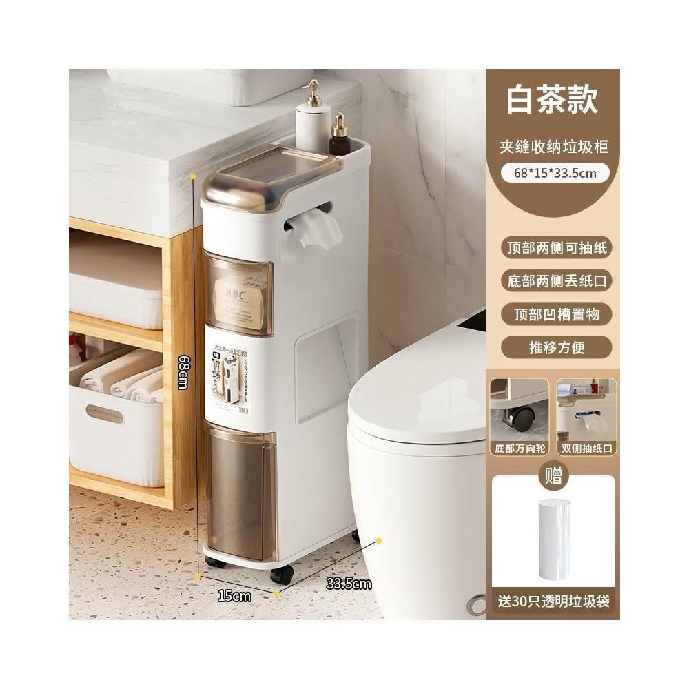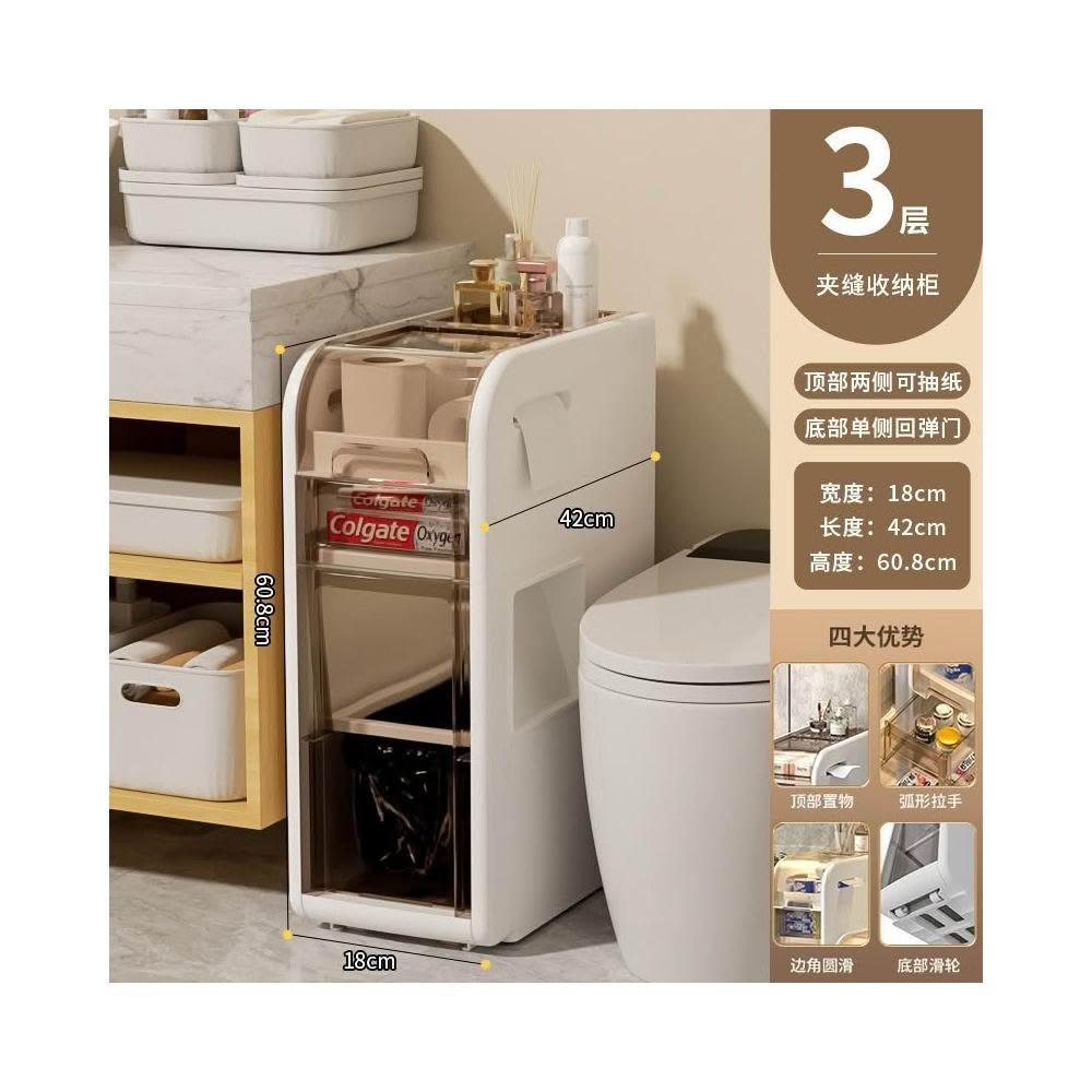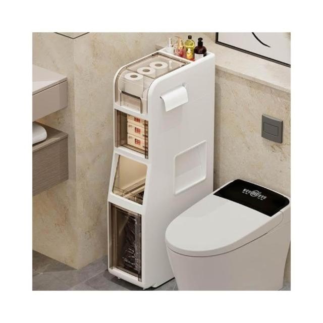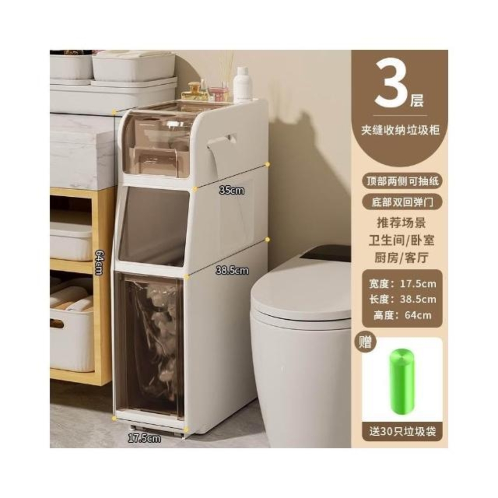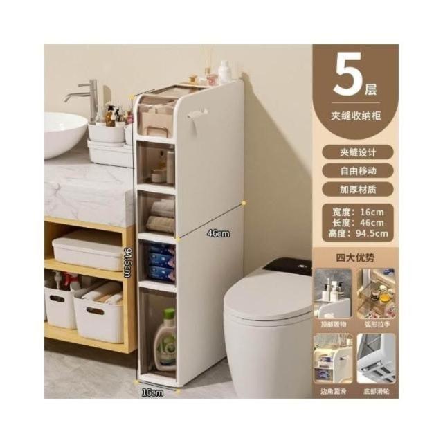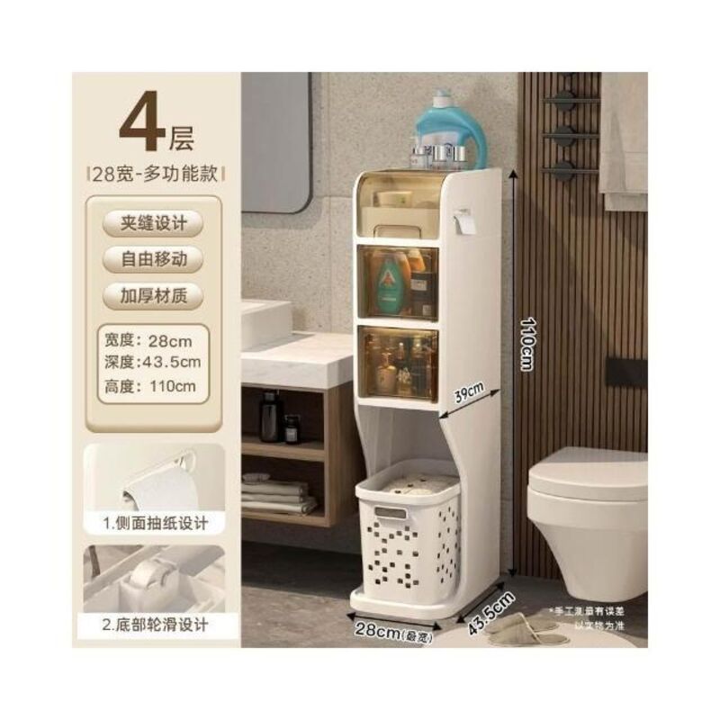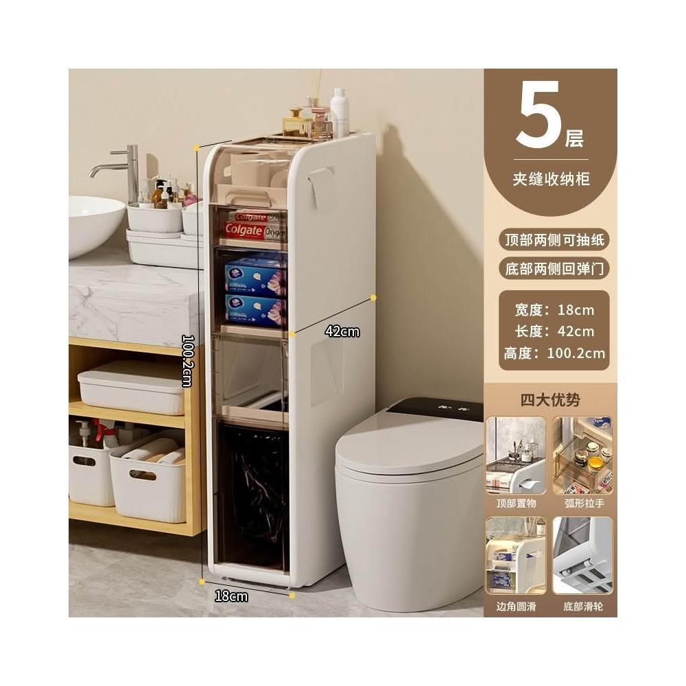 浴室夹缝柜 卫生间置物架 洗手间收纳柜 马桶储物柜 带垃圾桶纸篓 浴室收納櫃 浴室置物櫃 衛生間浴室收納櫃 夾縫收納櫃