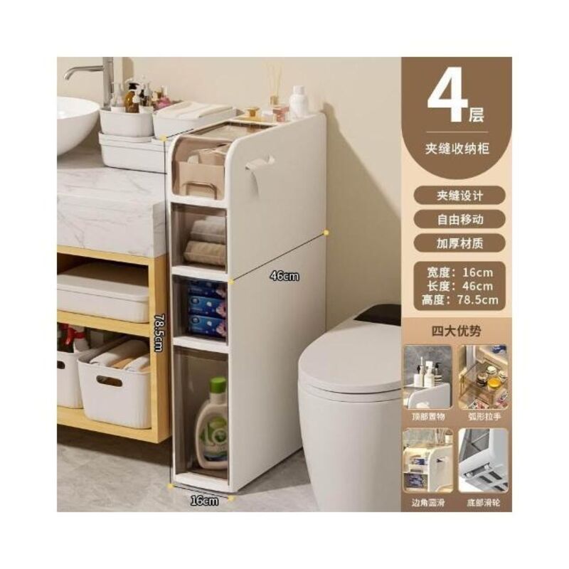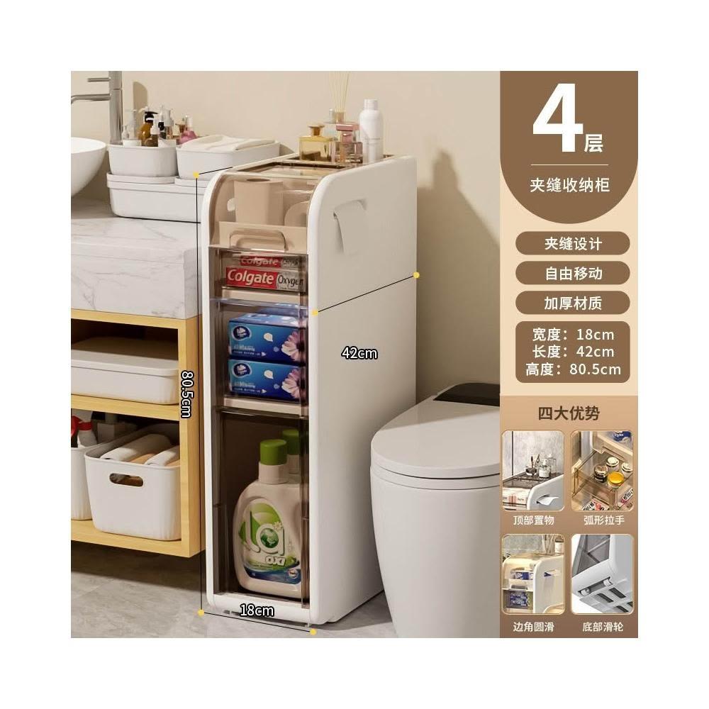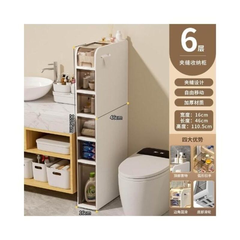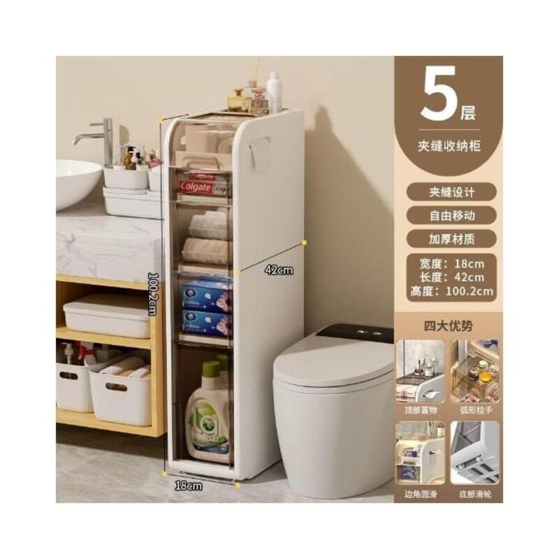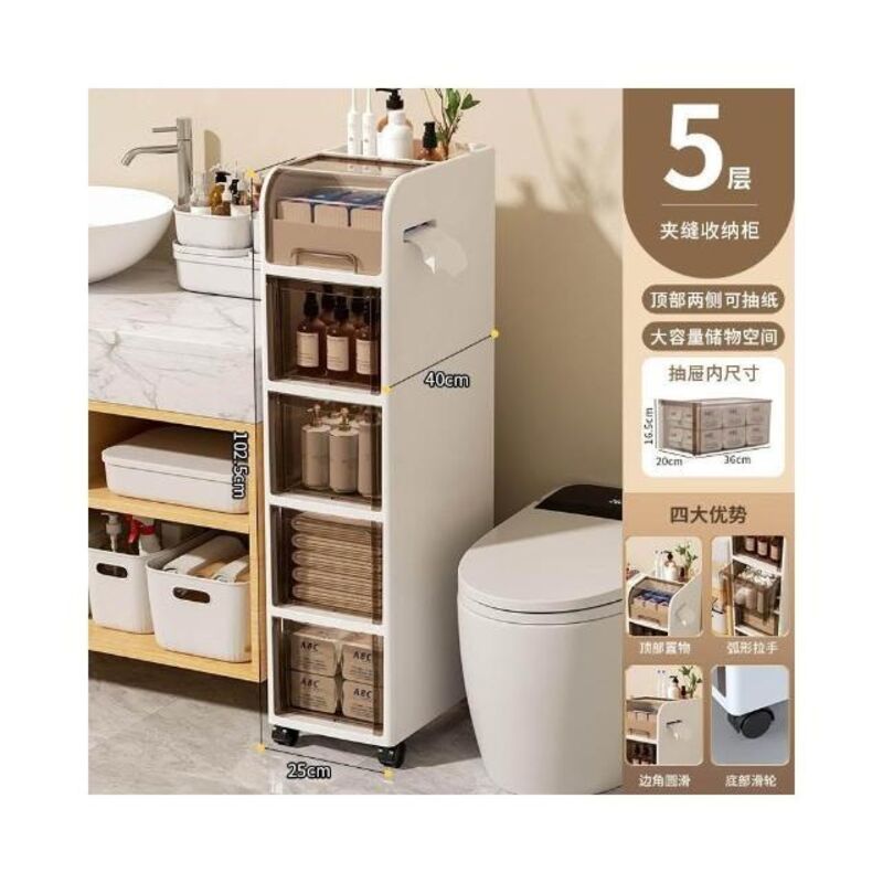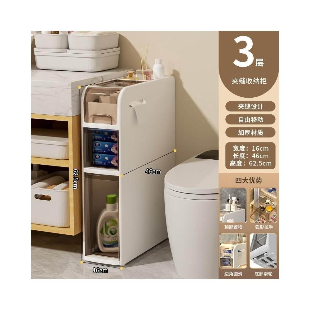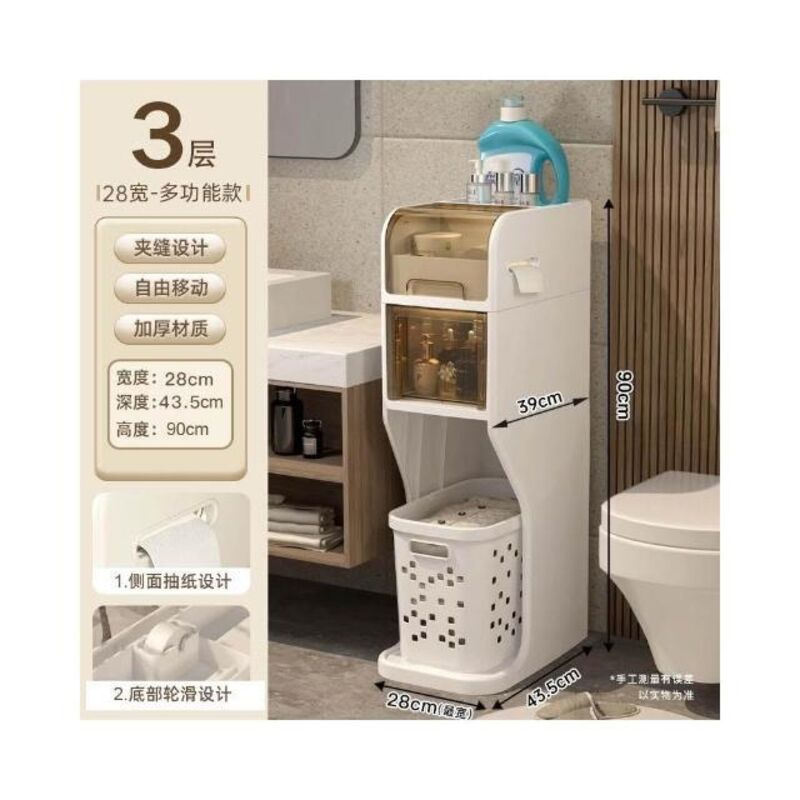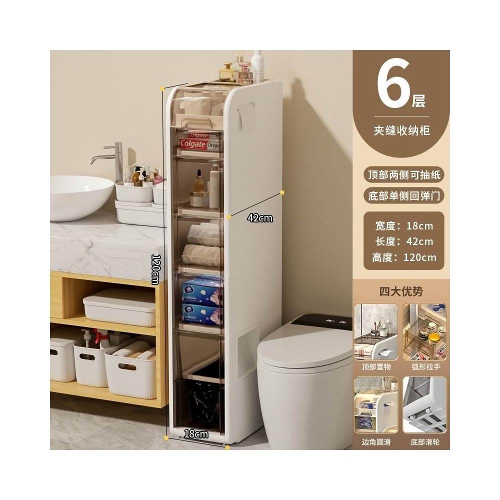 浴室夹缝柜 卫生间置物架 洗手间收纳柜 马桶储物柜 带垃圾桶纸篓 浴室收納櫃 浴室置物櫃 衛生間浴室收納櫃 夾縫收納櫃