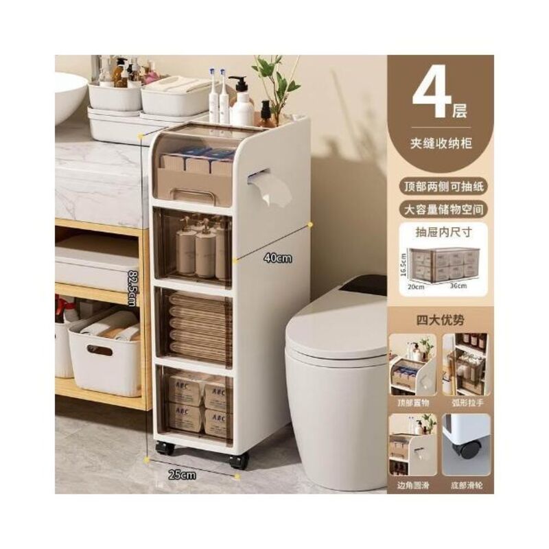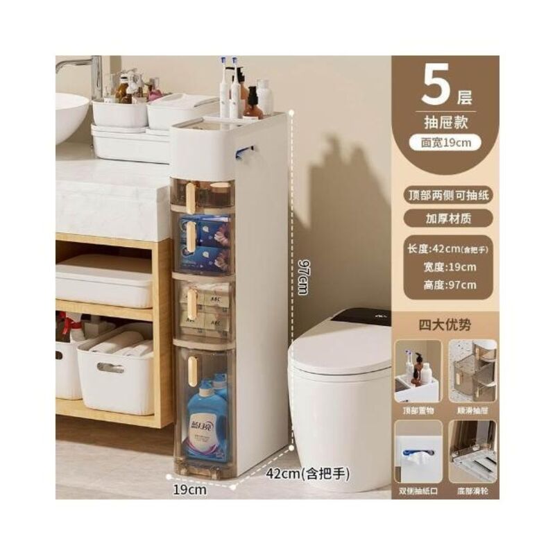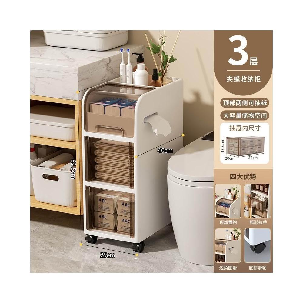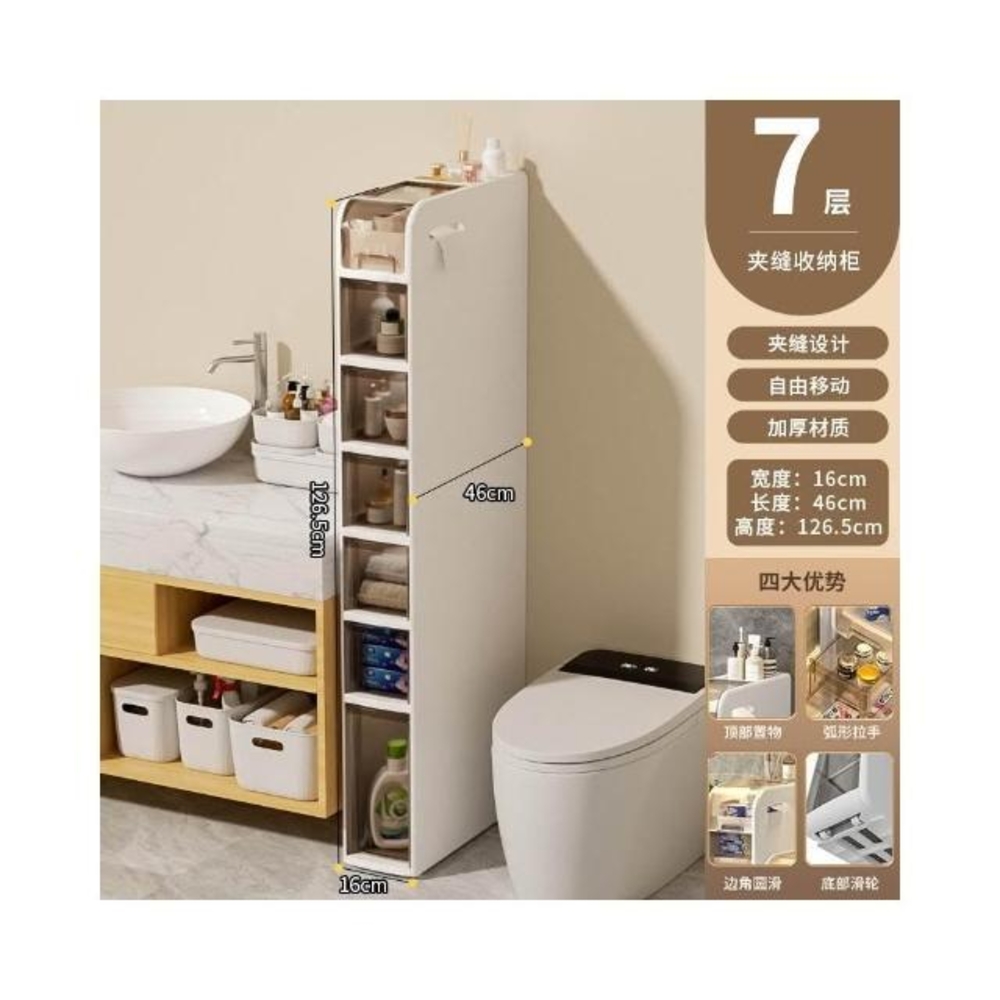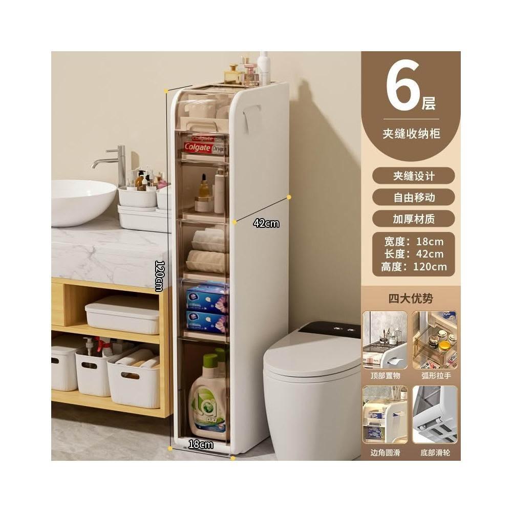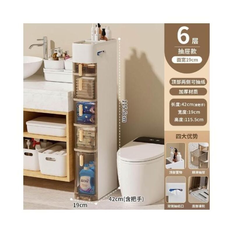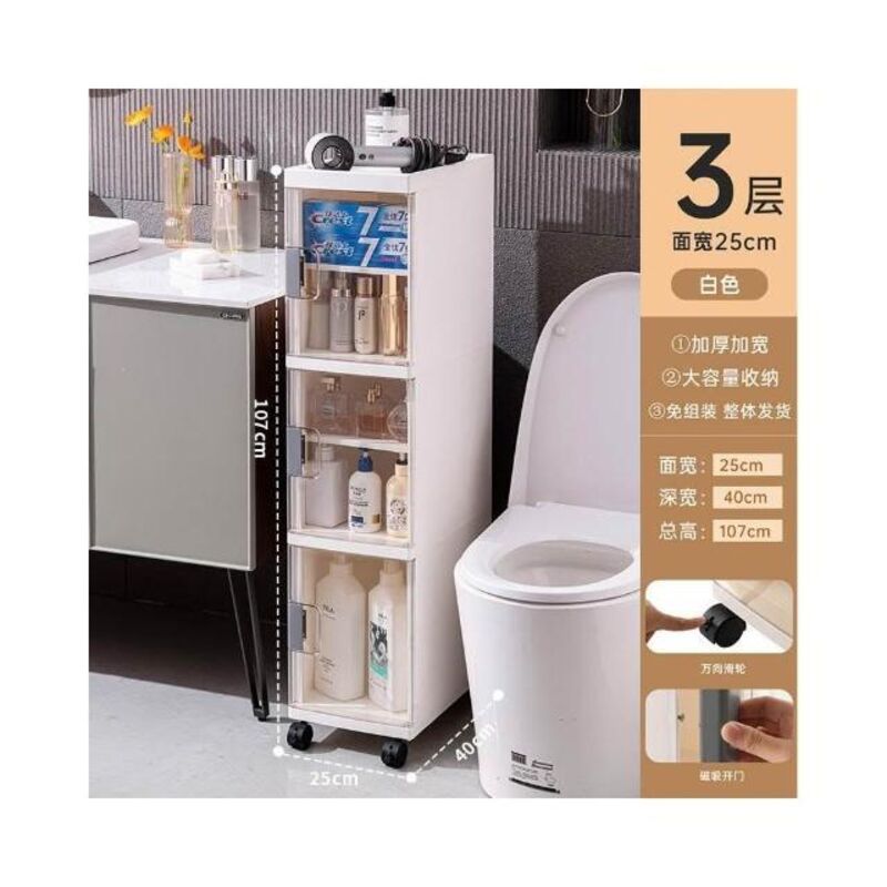 浴室夹缝柜 卫生间置物架 洗手间收纳柜 马桶储物柜 带垃圾桶纸篓 浴室收納櫃 浴室置物櫃 衛生間浴室收納櫃 夾縫收納櫃