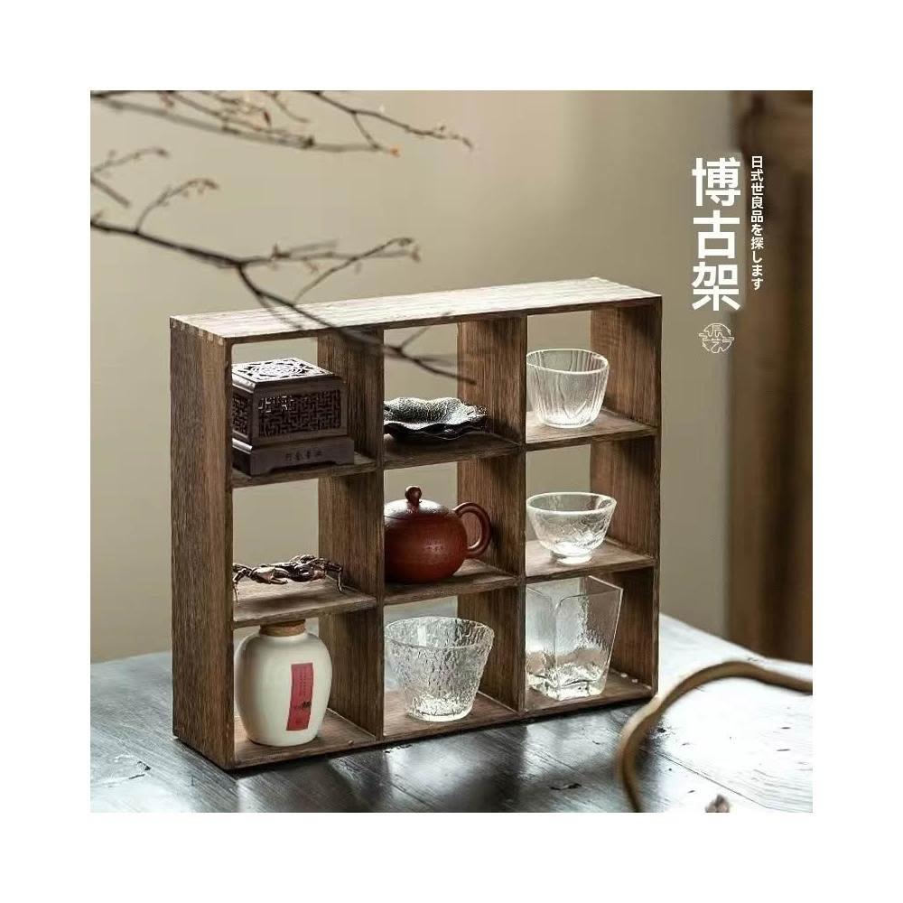 实木茶杯架子 茶壶架 多宝格茶具博古架 手工九宫格收纳架 六宫格茶架 實木多寶閣 茶杯架子 茶壺架 茶具收納置物展示架