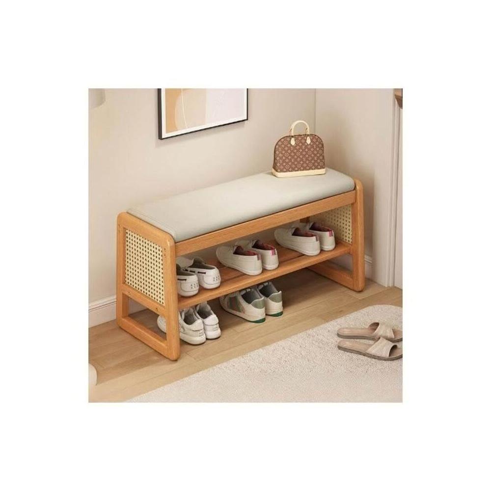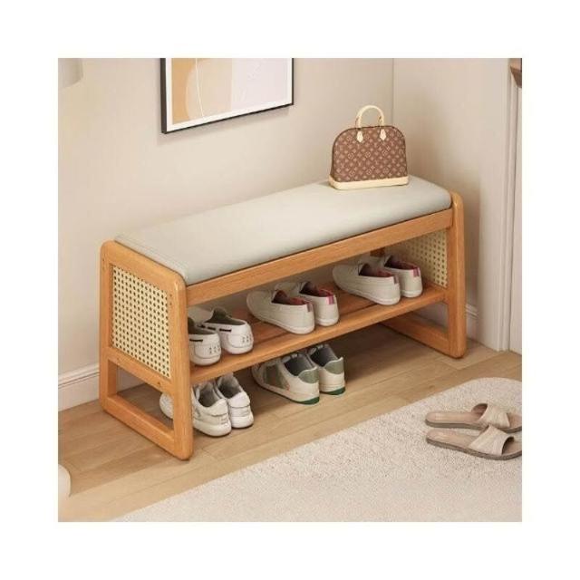 藤编鞋架 入户门家用门口多层收纳实木换鞋凳 可坐鞋柜 換鞋凳 換鞋椅 穿鞋椅 穿鞋凳 儲物椅 歇腳儲物凳 玄關鞋凳