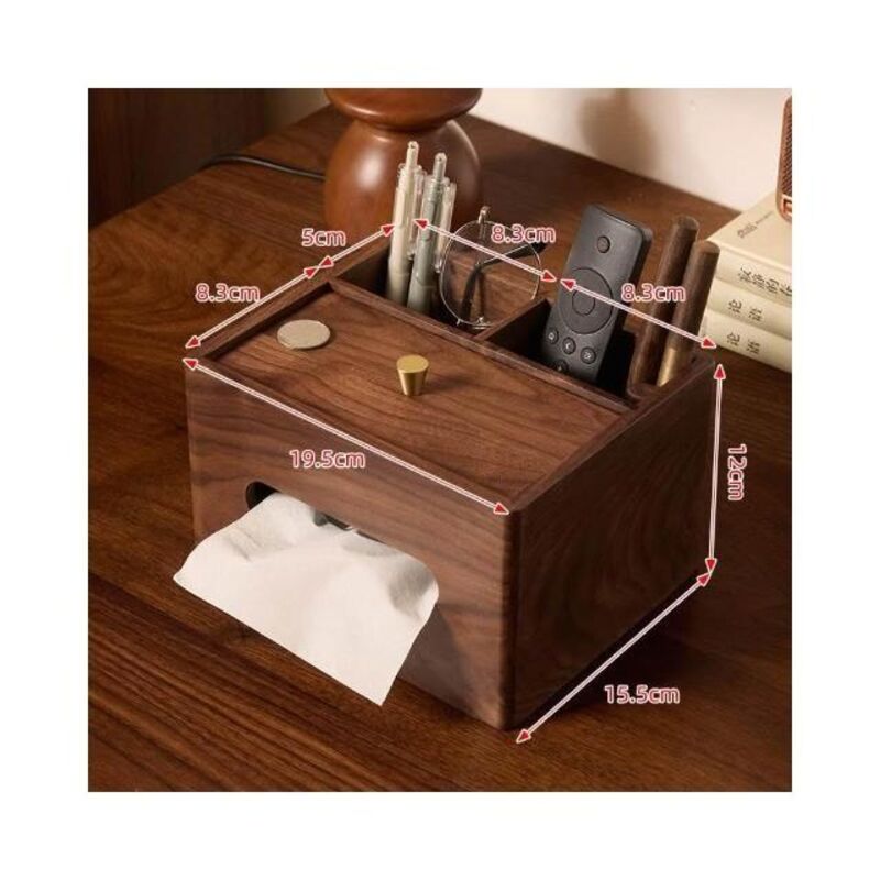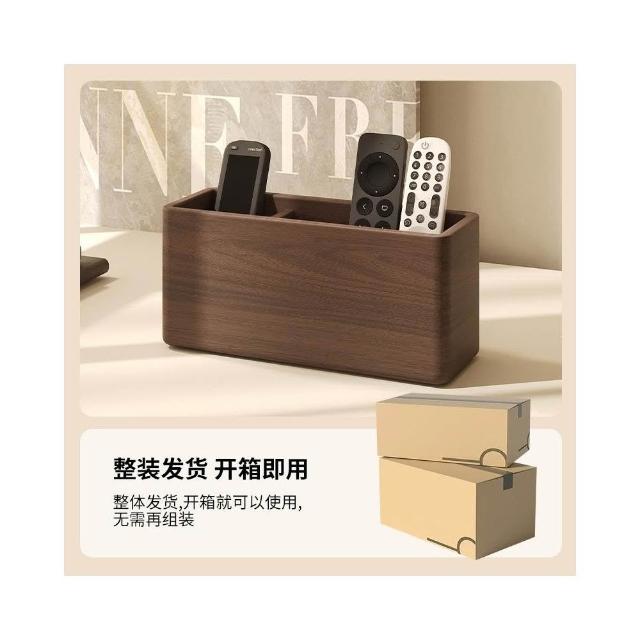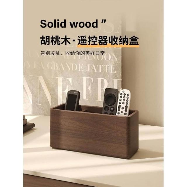 北美黑胡桃木遥控器收纳盒 实木茶几卧室多功能轻奢高档原木分格盒 簡約客廳茶幾雜物盒 多功能紙巾盒 家用紙抽盒 面紙盒