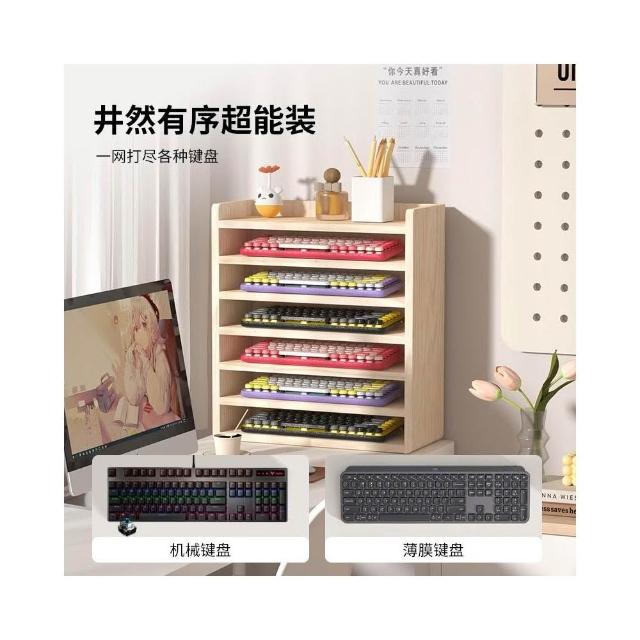 键盘收纳架展示架 防尘收纳柜 桌面办公机械键盘架放置物架 木收纳盒 鍵盤收納櫃 防塵展示架 鼠標展示盒放置架 機械鍵盤架