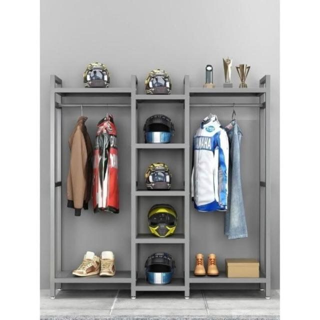头盔骑行服装摩托机车卡丁滑板帽子收纳装备货架 展示家用放置物柜 機車頭盔收納櫃 安全帽收納 頭盔騎行服商品展示貨架
