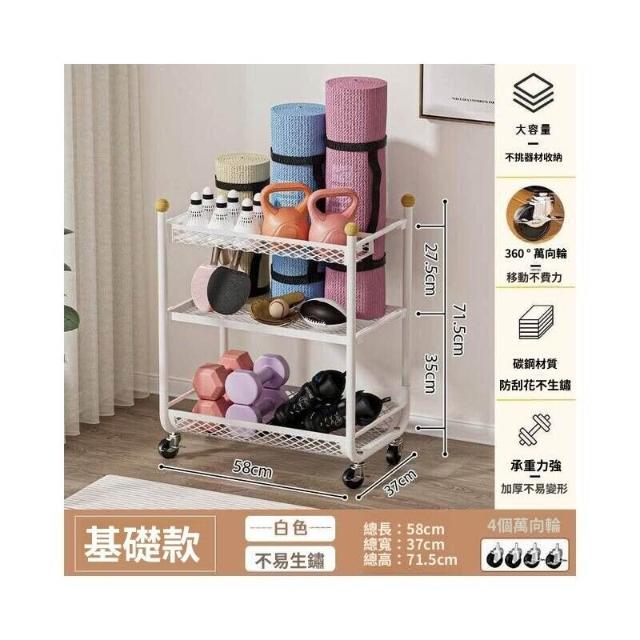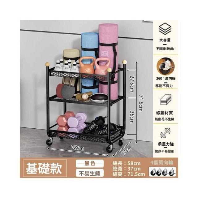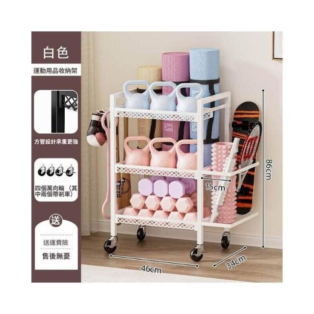 健身器材收纳架 可移动家用瑜伽垫泡沫轴哑铃收纳筐 运动用品置物架 收納神器 家用健身器材收納架 帶輪運動器材收納神器