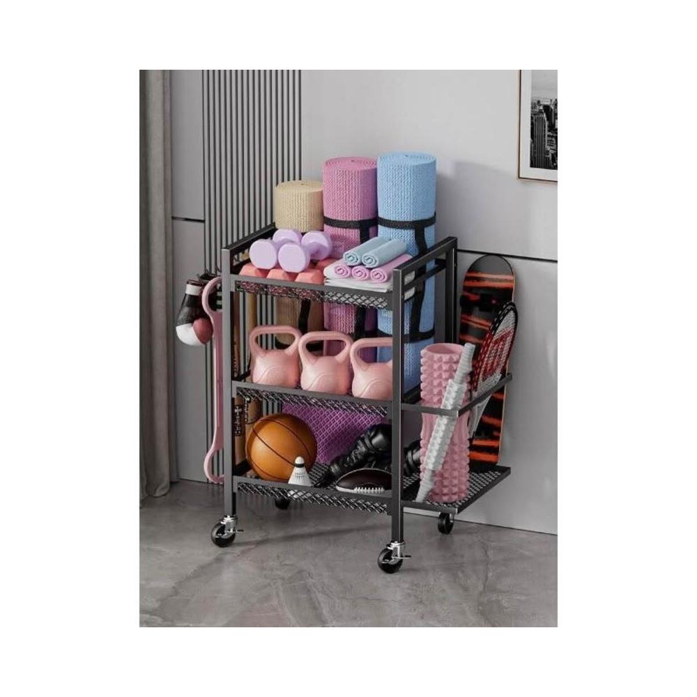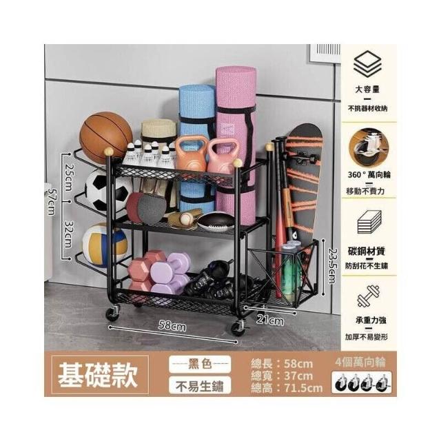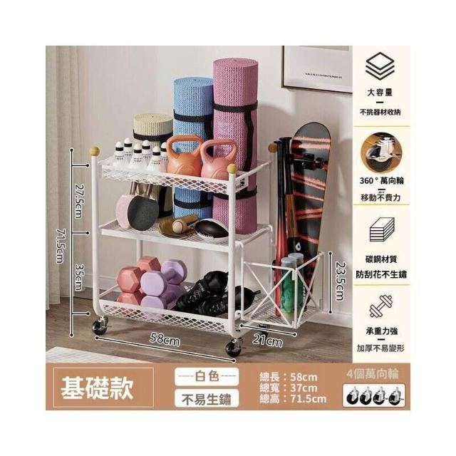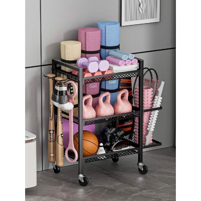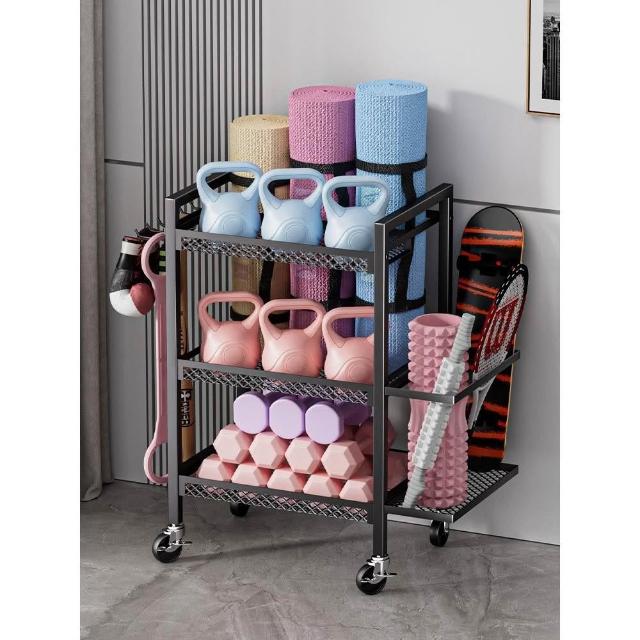 健身器材收纳架 可移动家用瑜伽垫泡沫轴哑铃收纳筐 运动用品置物架 收納神器 家用健身器材收納架 帶輪運動器材收納神器