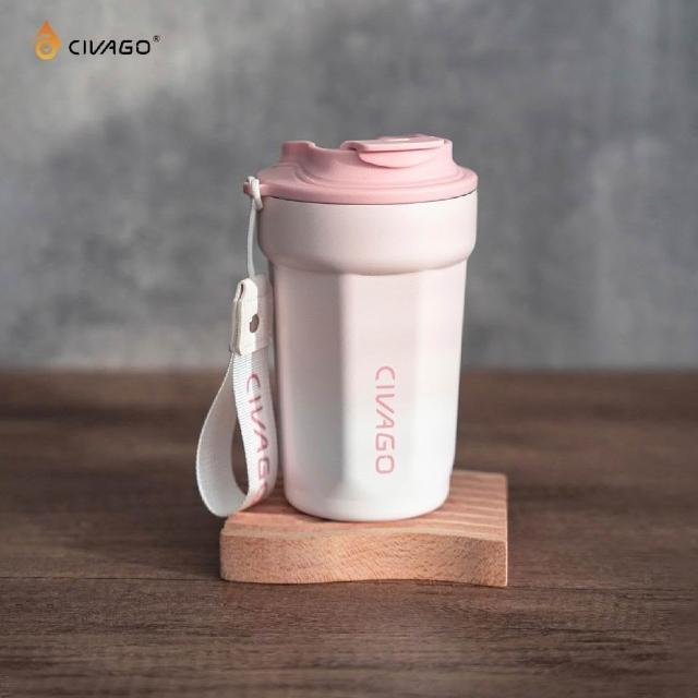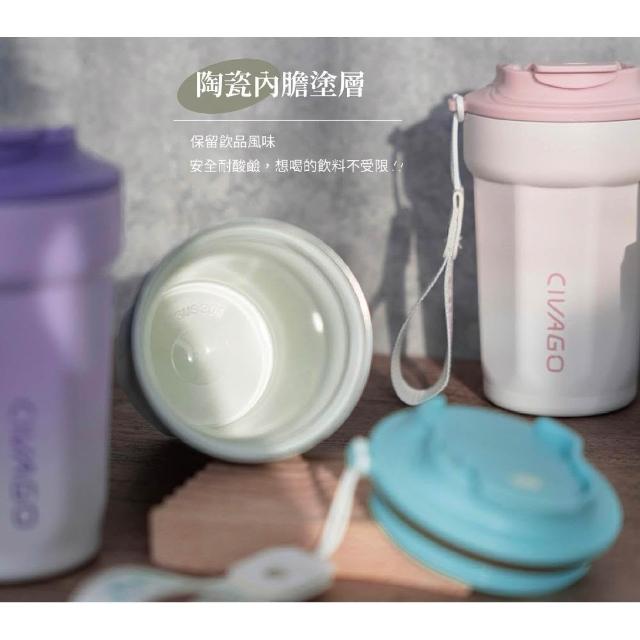 CIVAGO朵朵陶瓷保溫咖啡杯/漸層款-雲朵 櫻花粉 384ml