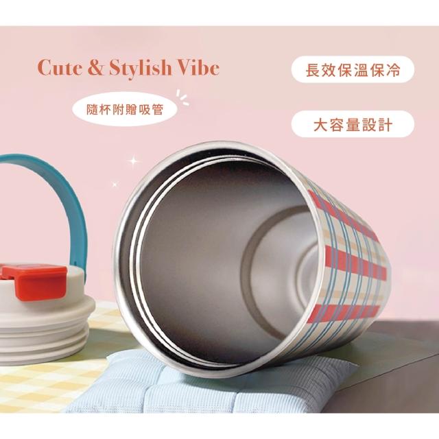 CIVAGO小怪獸雙飲保溫杯/薰衣奶紫格 850ml (隨杯附贈小吊飾)