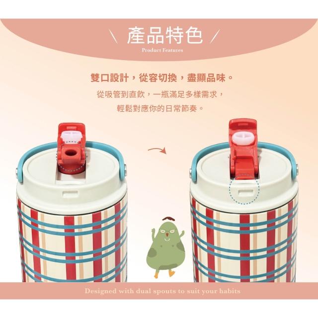 CIVAGO小怪獸雙飲保溫杯/薰衣奶紫格 850ml (隨杯附贈小吊飾)