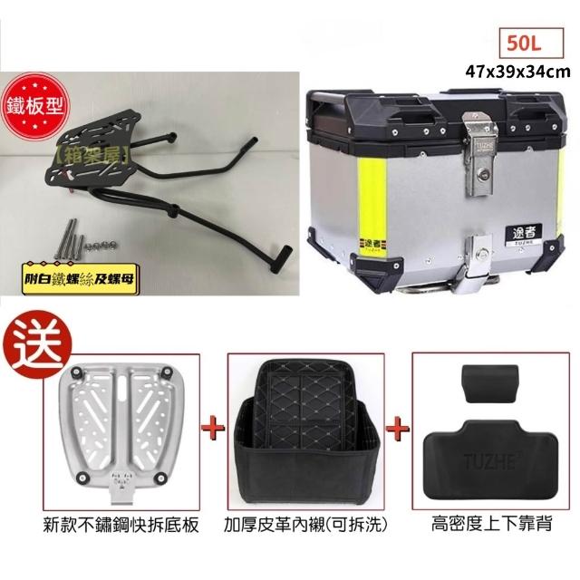 ((新北新莊箱架屋)) 三陽 1代 DRG 158 鐵板型 後架 後箱架 箱架 漢堡架 貨架 + 途者 鋁箱 50L 銀色 + 靠背 附白鐵不鏽鋼快拆底板 組合賣場