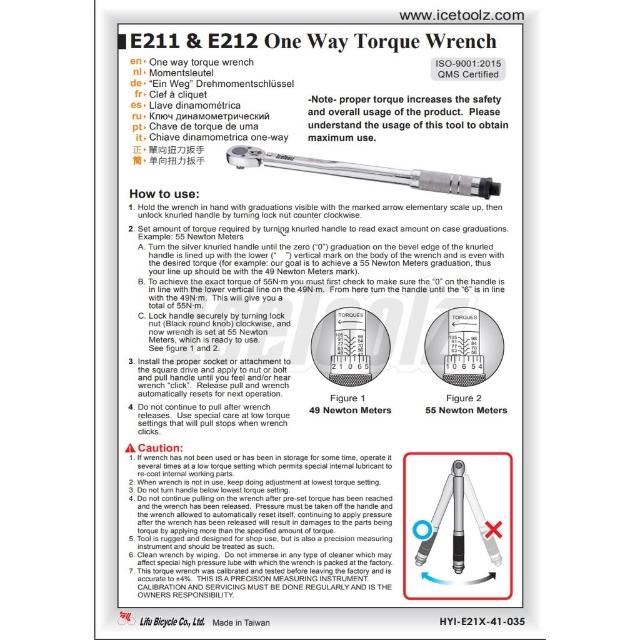 Icetoolz 自行車.單向扭力扳手『E211』21~105N·m 適用3/8"、1/2" 附塑膠收納盒