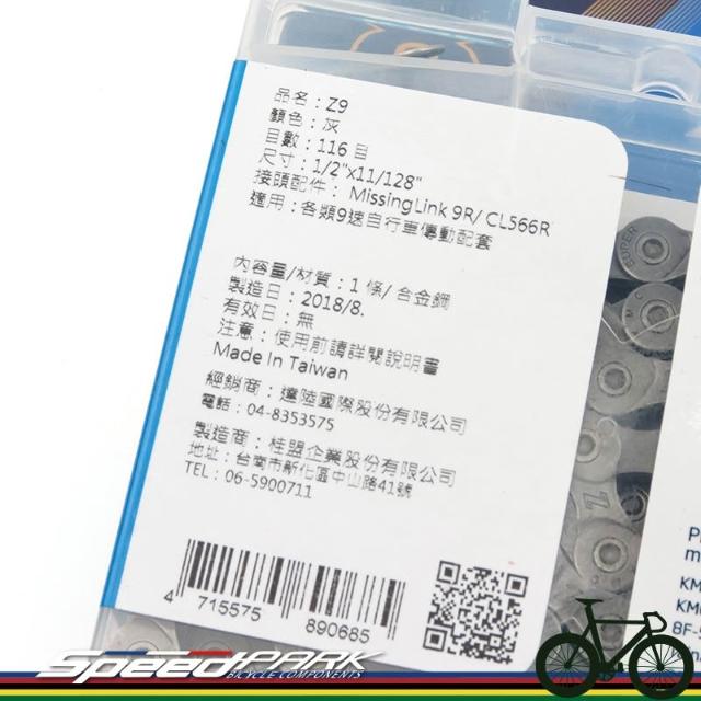 KMC 彩色鏈條 Z9 九速鏈條 【灰色】 116目 附快扣 最新包裝 盒裝 鏈條 公路車 登山車