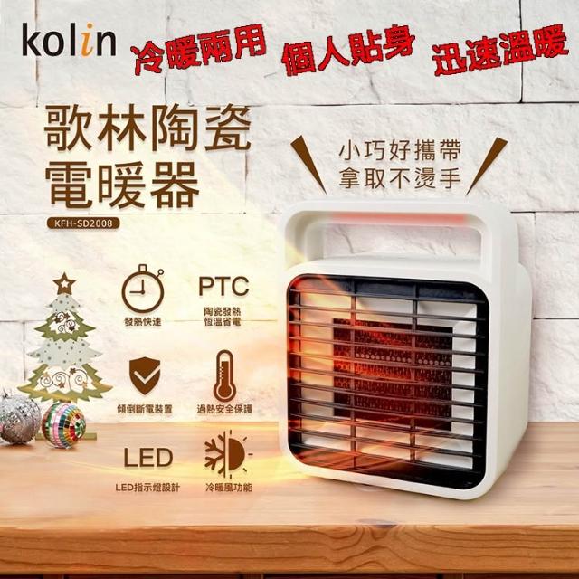 Kolin 歌林「家電王」小巧陶瓷電暖器 KFH-SD2008,冷暖兩用 多重安全斷電,辦公室 房間 電暖爐 暖風扇