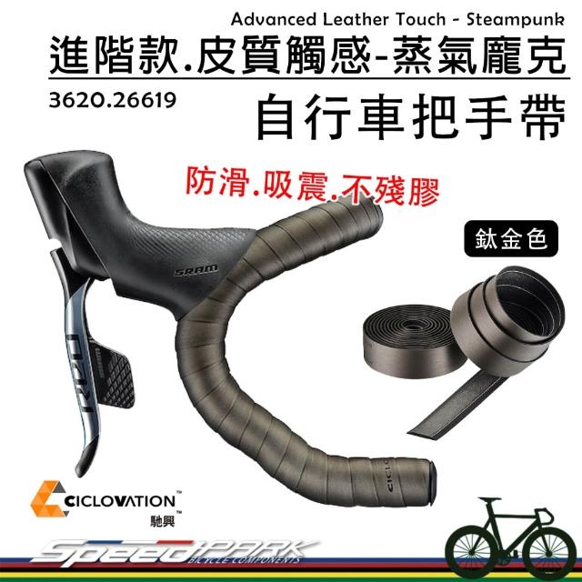 速度公園馳興 CICLOVATION 進階款 皮質觸感 蒸氣龐克『鈦金色』自行車手把帶,把手帶 握把帶 車把帶 單車