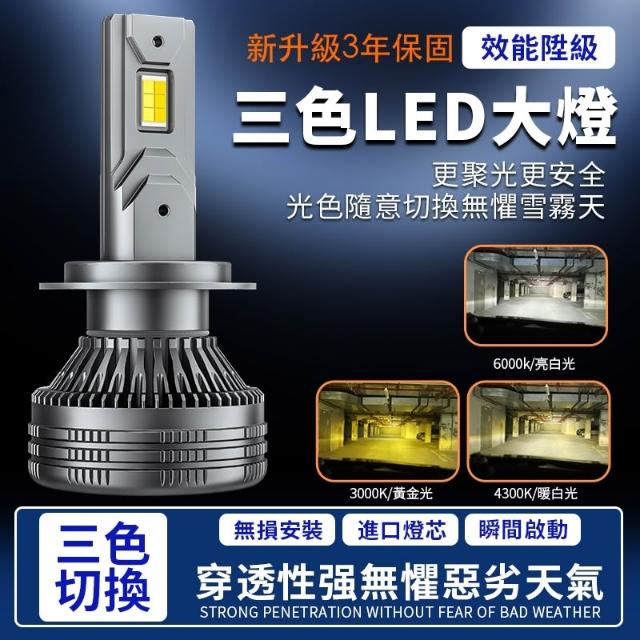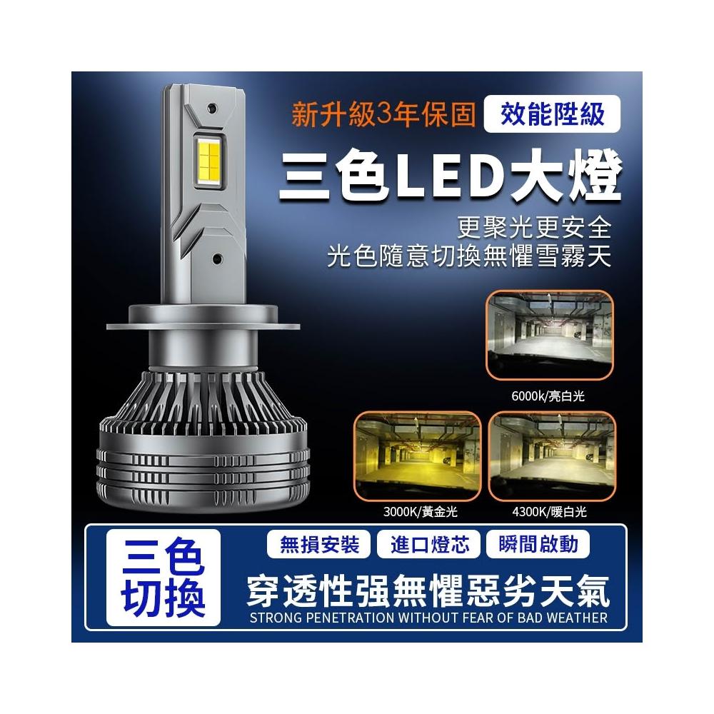 隔日到店-3年保固 三色LED大燈 真實90W LED大燈 汽車 機車 驗車可過 H1 H4 H7 H11 9006