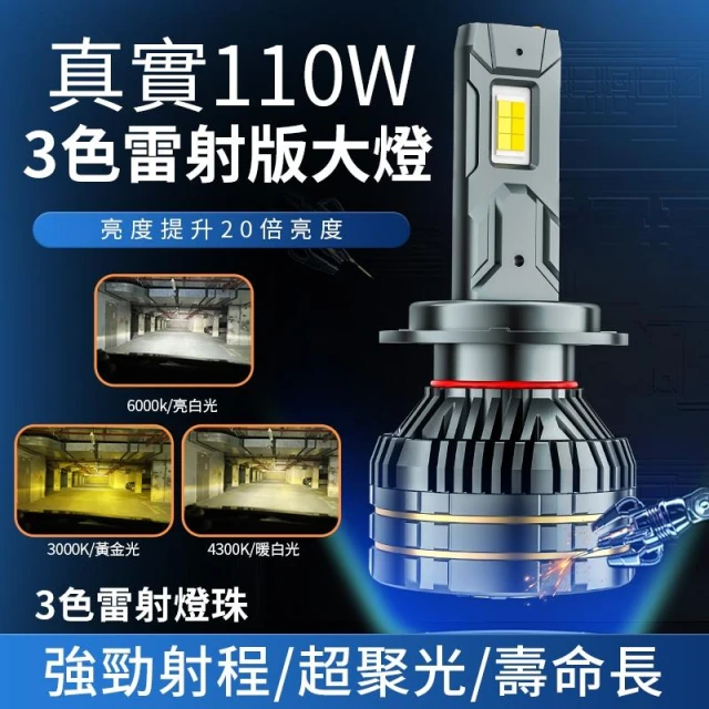 「現貨+預售+五年保固」铜管散熱爆亮三色LED大燈 大功率 汽車大燈 車燈 機車 H1 H4 H7 H11「昊睿車品」