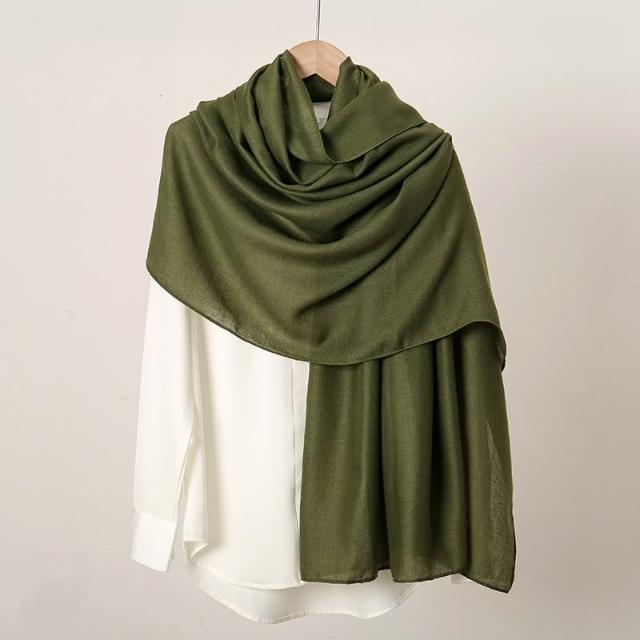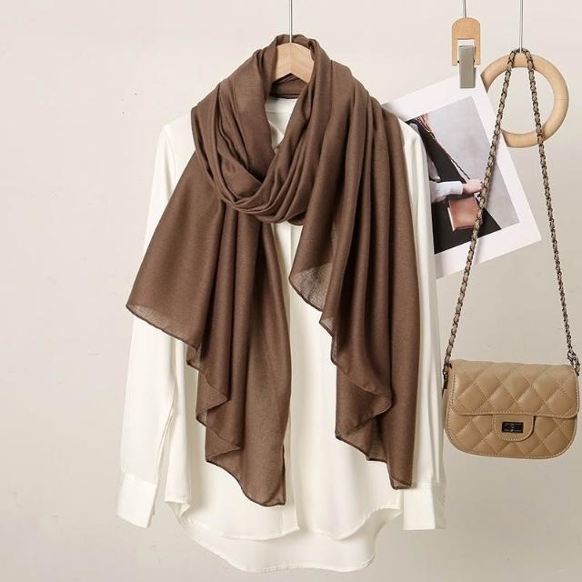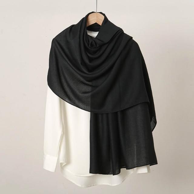 秋冬熱銷新款單色亞麻女士圍巾東南亞流行純色棉麻手感長巾現貨
