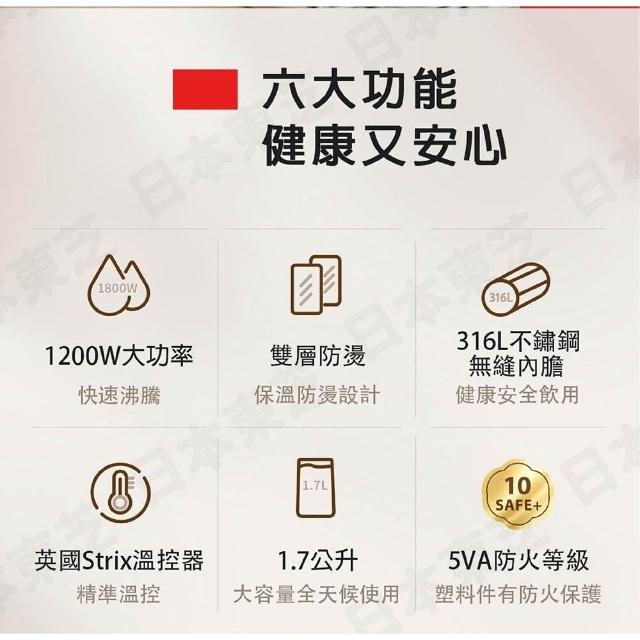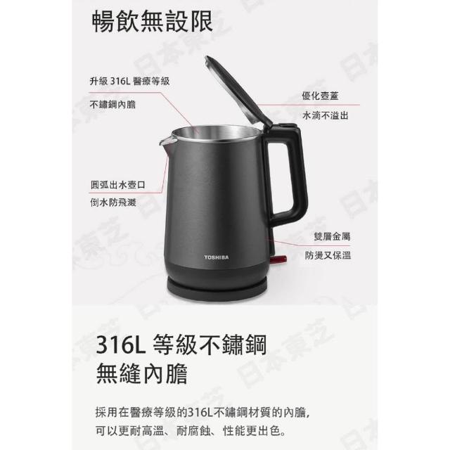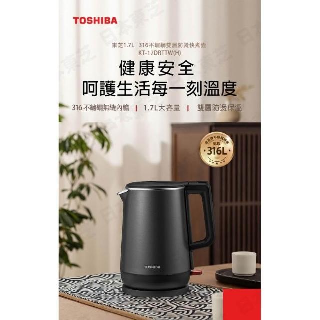 TOSHIBA 東芝TOSHIBA 316雙層防燙快煮壺 雙層防燙 316不銹鋼 1.7L 1200W功率 快速煮沸 KT-17DRTTW