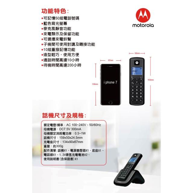 MotorolaMotorola大音量DECT無線單機 子機 母機 T201+ T202+ 無線電話 老人 音量大電話