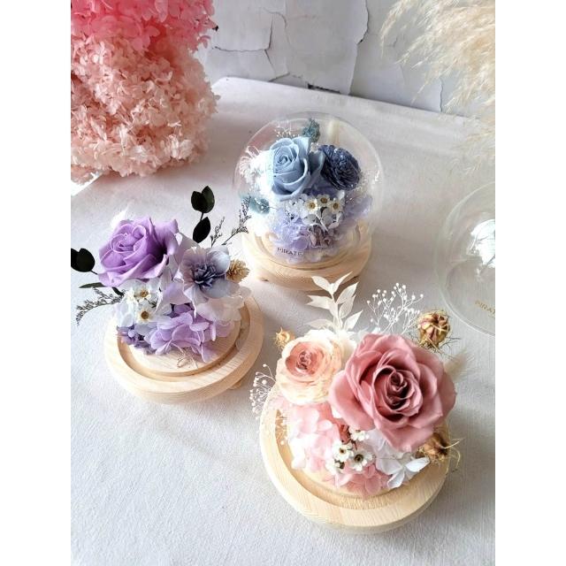海藏花苑│人氣色調 永生康乃馨 玫瑰玻璃球。祈願玻璃球