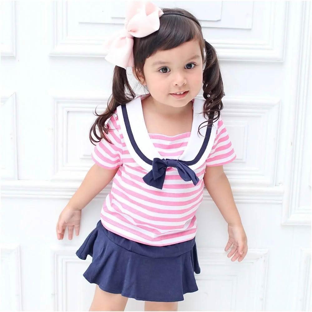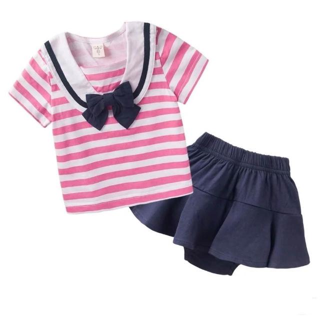 Baby 童衣兒童夏季短袖套裝組 女童條紋水手服+包屁裙 女寶寶套裝 52215