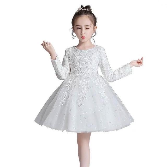 Baby 童衣兒童長袖白色洋裝 幼稚園畢業禮服 花童小禮服 88985