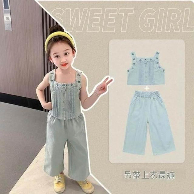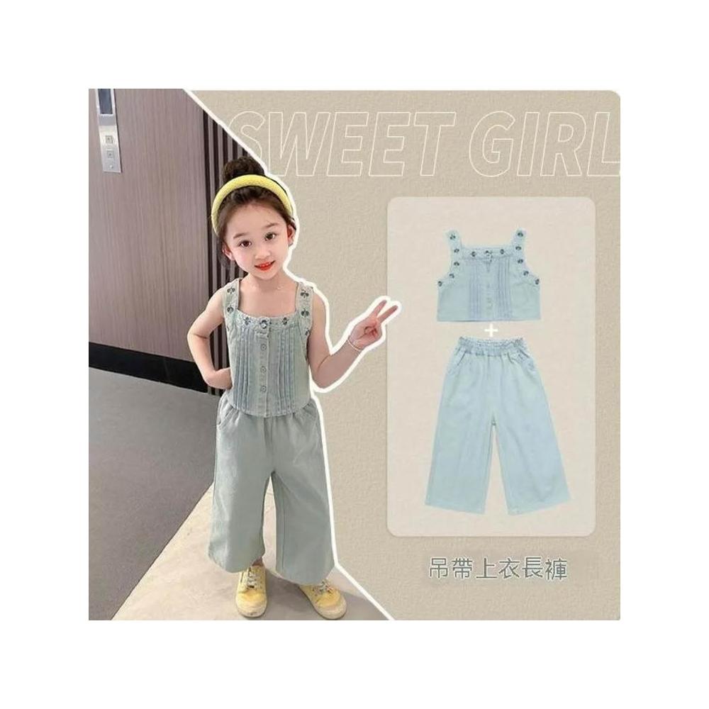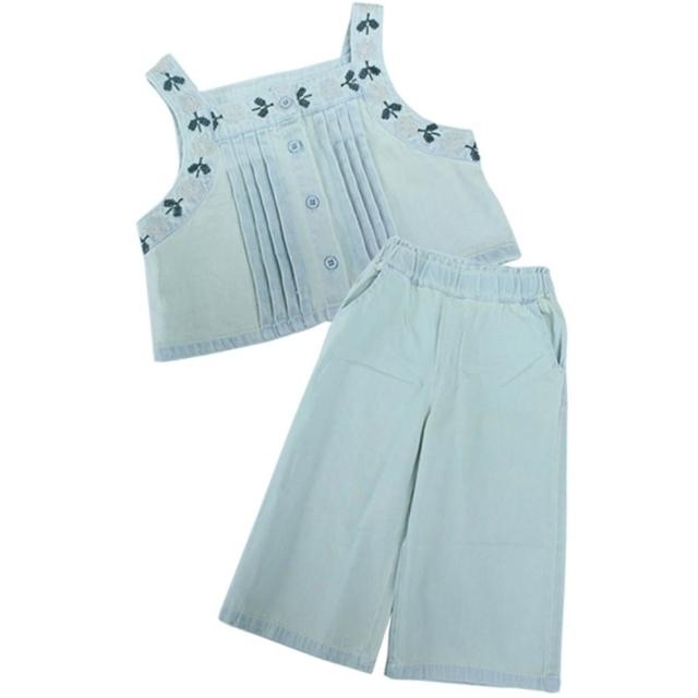 Baby 童衣女童套裝 刺繡牛仔背心 寬管褲 無袖套裝 11658