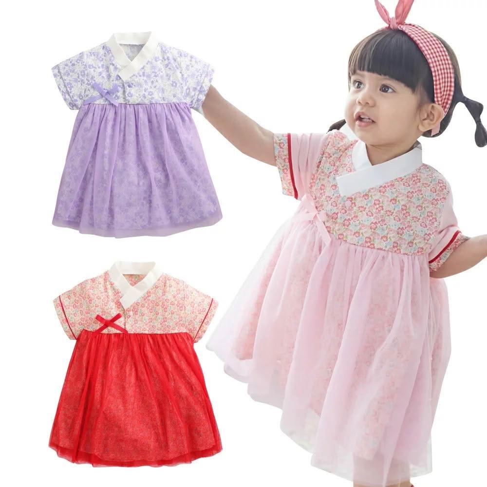 Baby 童衣兒童包屁裙 女寶寶短袖韓服造型服 女童紗裙包屁衣童裝 22001
