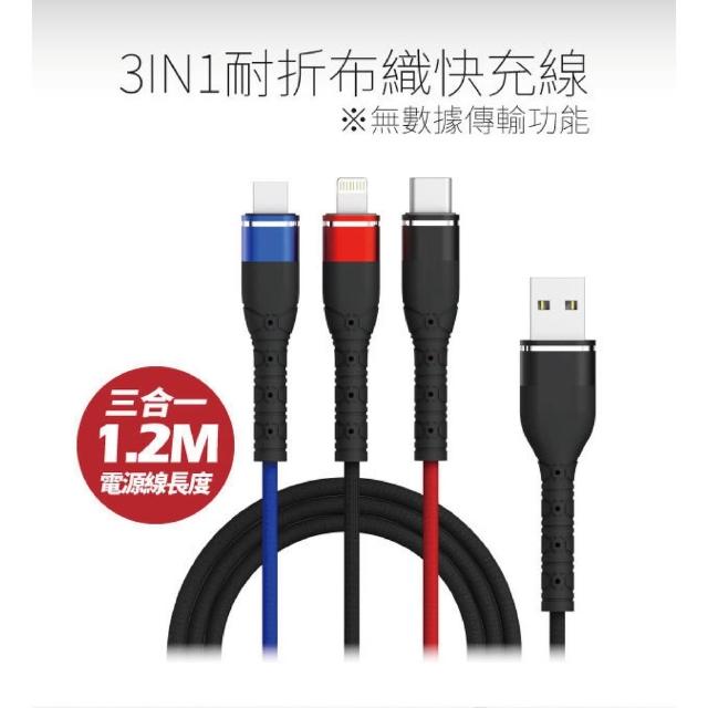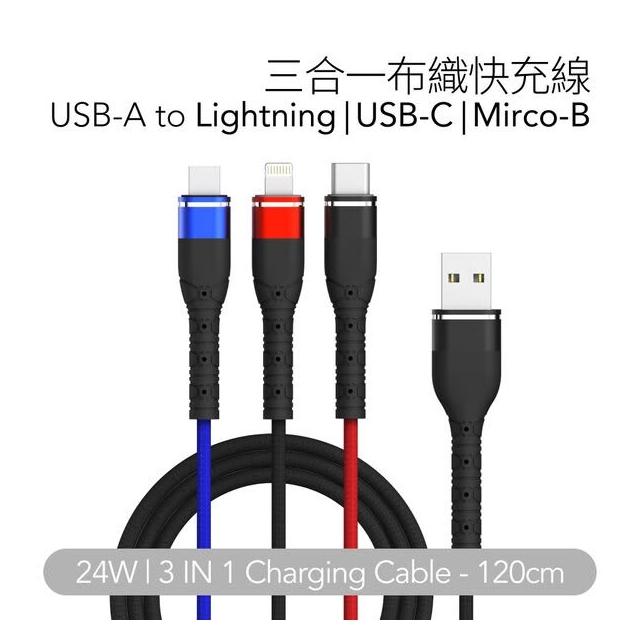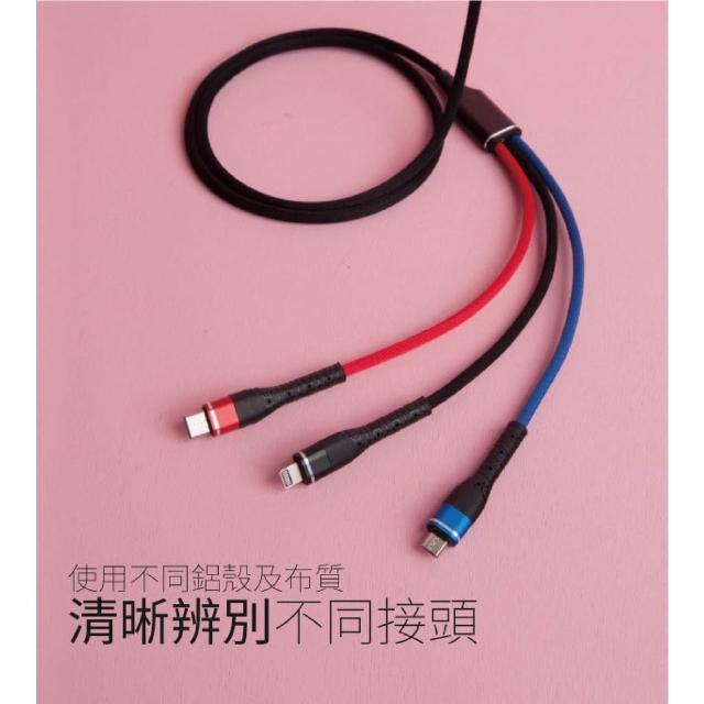 三頭龍|編織快充線 Micro usb、Type C、Lightning
