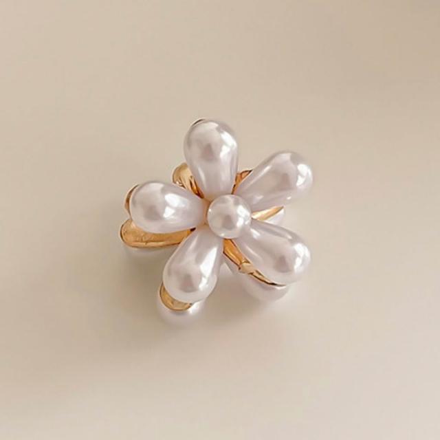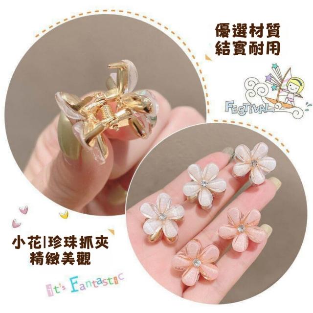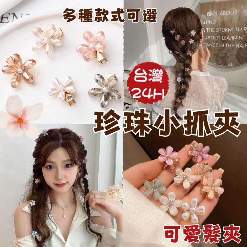小花髮夾【韓裡韓氣顯臉小 初戀女友感】珍珠小抓夾 髮夾 水晶 小花抓夾 抓夾 珍珠髮夾 可愛小髮夾 韓版森系珍珠髮夾
