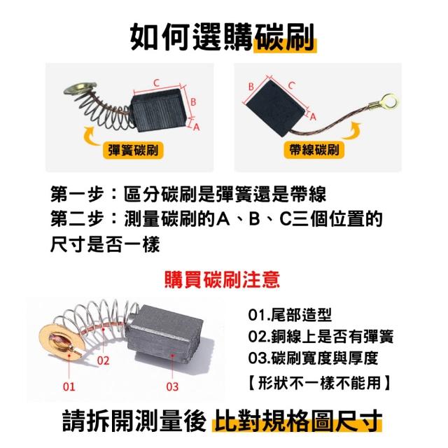 台灣 碳刷/電刷按規格有圖比對 電動鎚 水泥攪拌機 砂輪機 打蠟機 電鑽 電刷子 拋光機 角磨機 電錘 切割機 磨光機