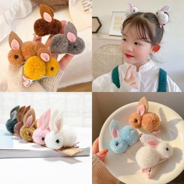 小兔子髮夾 髮夾 髮飾 兒童髮飾 兒童髮夾 可愛兔子髮夾 粉嫩兔兔 可愛毛絨絨兔子髮飾
