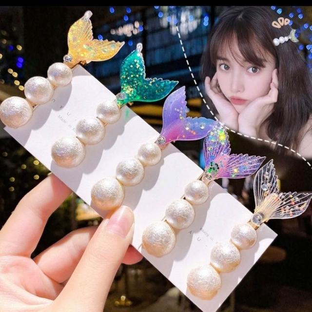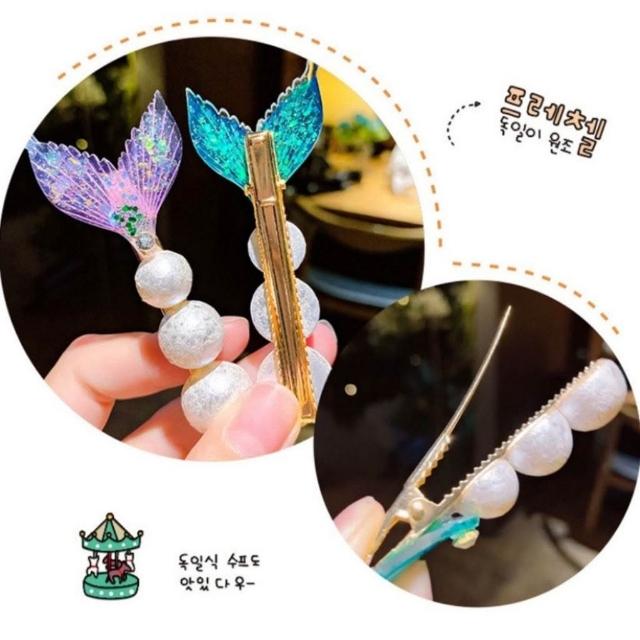美人魚髮夾 珍珠魚尾髮夾 瀏海夾 珍珠髮夾 兒童 可愛 美人魚髮飾 閃亮魚尾側邊夾 超仙魚尾瀏海夾 人魚 髮夾 髮飾
