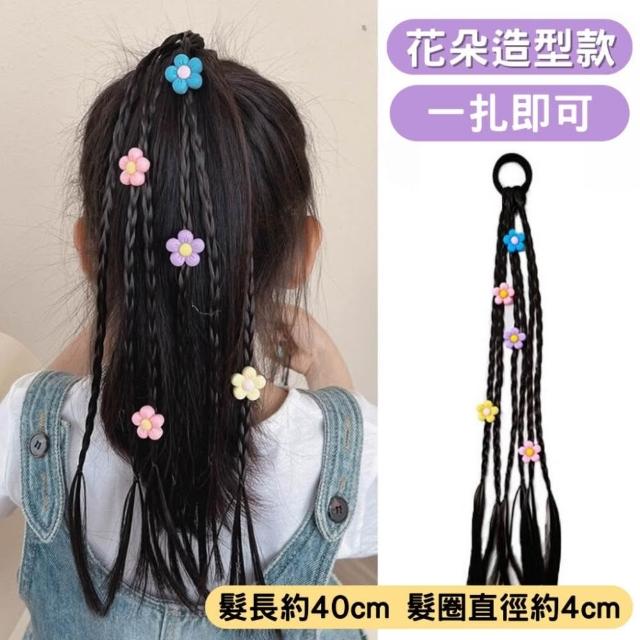 兒童髮飾 兒童假髮 辮子 麻花辮 編髮 髮片 編髮彩繩 彩色辮子女童高馬尾五角星編髮頭繩髮