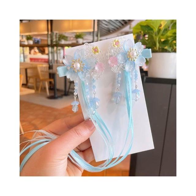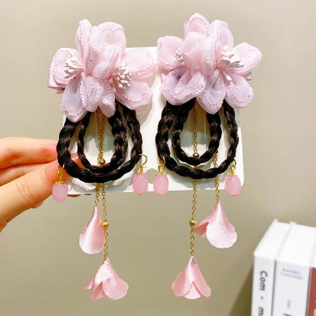 古風髮飾 流蘇髮夾 中國風 髮夾 古裝 假辮子 漢服髮飾 古風女童髮夾 花朵假辮子髮夾