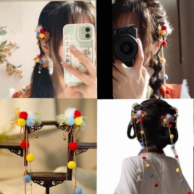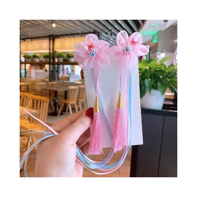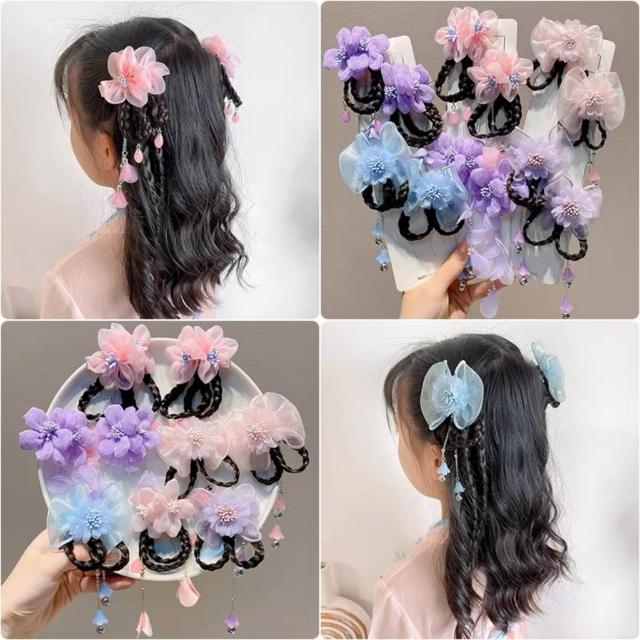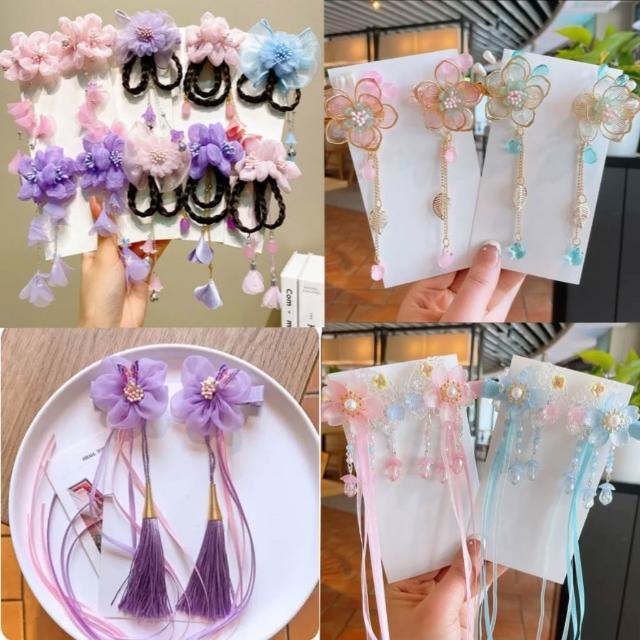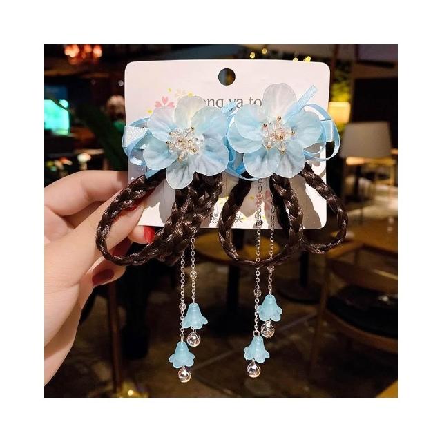 古風髮飾 流蘇髮夾 中國風 髮夾 古裝 假辮子 漢服髮飾 古風女童髮夾 花朵假辮子髮夾