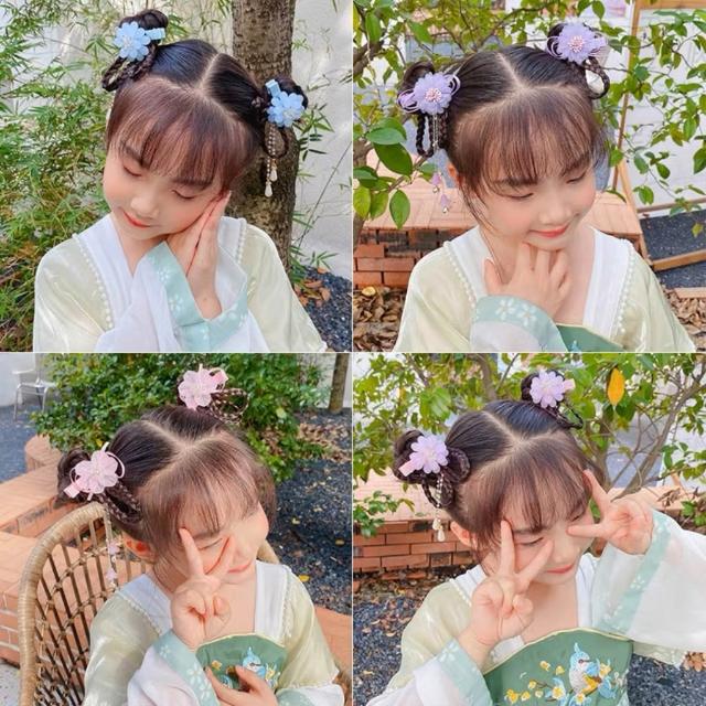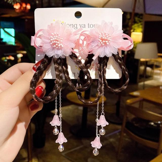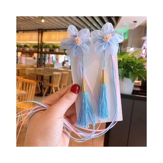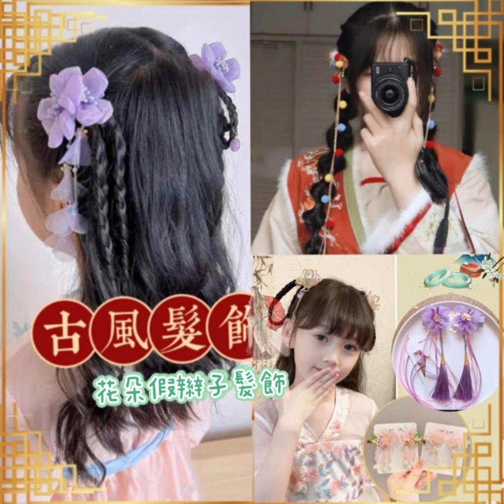 古風髮飾 流蘇髮夾 中國風 髮夾 古裝 假辮子 漢服髮飾 古風女童髮夾 花朵假辮子髮夾
