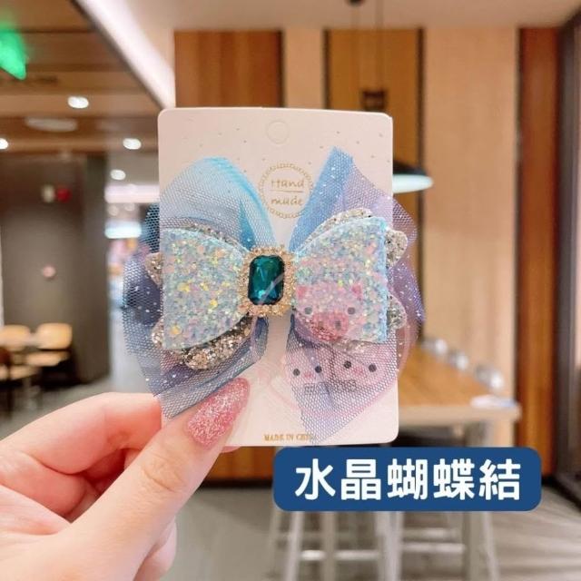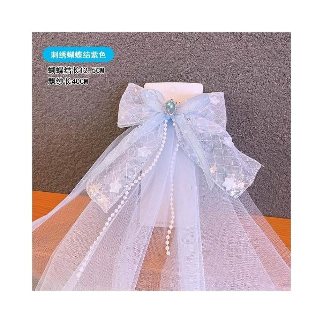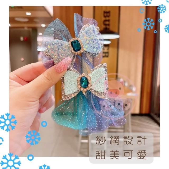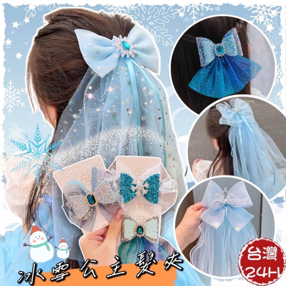 冰雪公主髮夾 elsa髮夾 公主 兒童髮夾 藍色公主裝 雪花蝴蝶結飄帶髮夾 冰雪奇緣髮飾