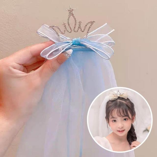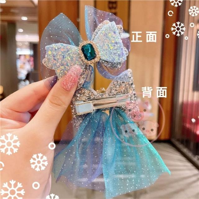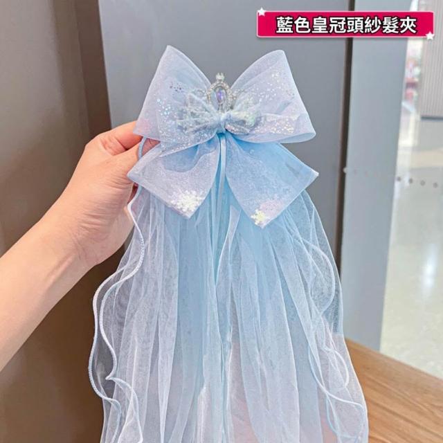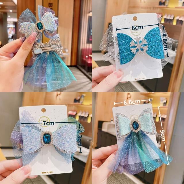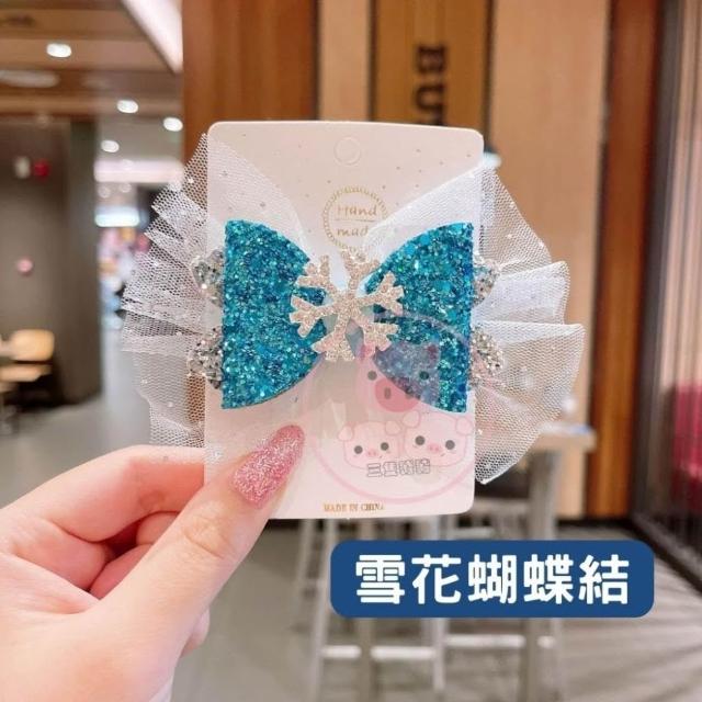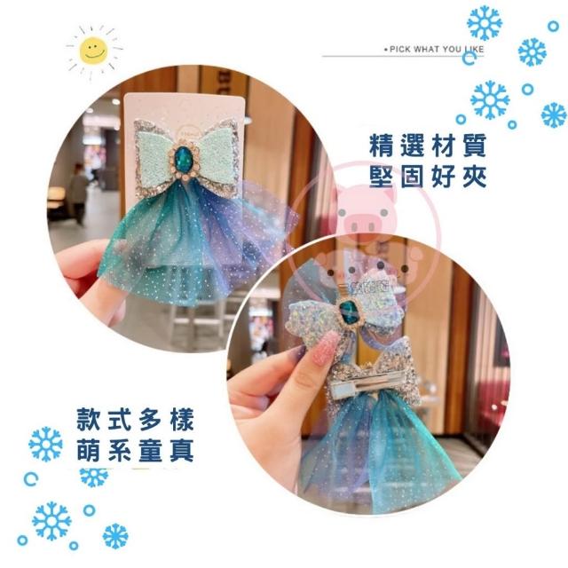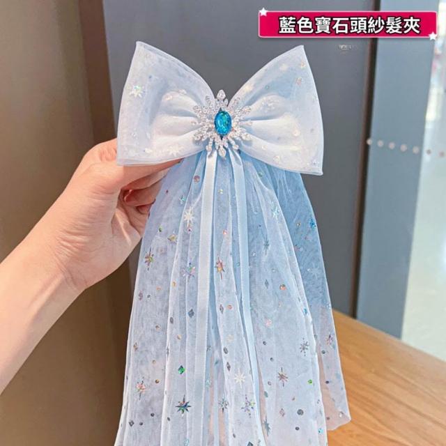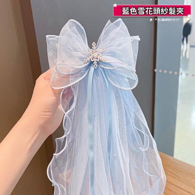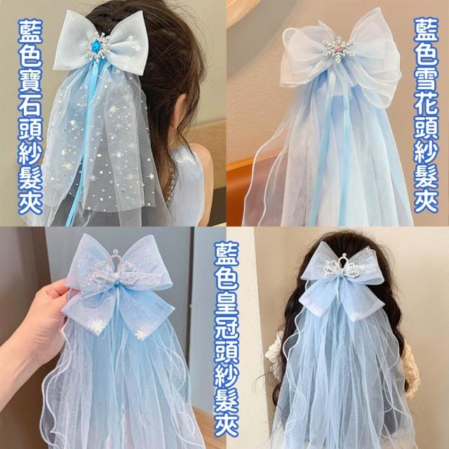冰雪公主髮夾 elsa髮夾 公主 兒童髮夾 藍色公主裝 雪花蝴蝶結飄帶髮夾 冰雪奇緣髮飾