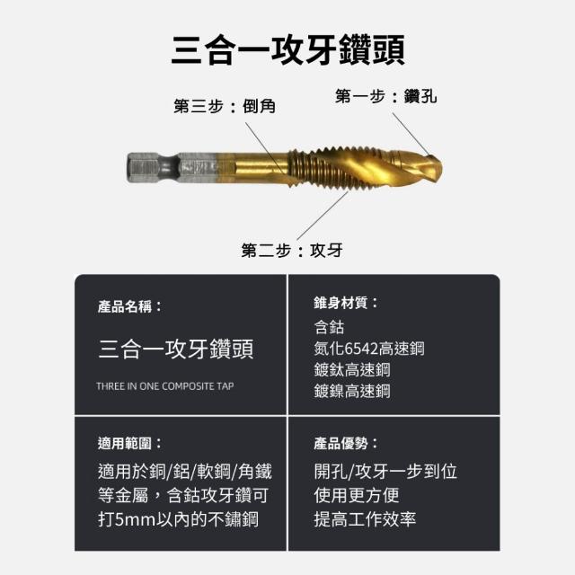 鑽孔+攻牙 攻牙鑽頭 攻牙器 絲錐 攻牙器 公制攻牙器 攻牙 螺絲攻 鑽頭攻牙組 英制 絲攻 鍍鈦攻牙器 鑽頭攻牙