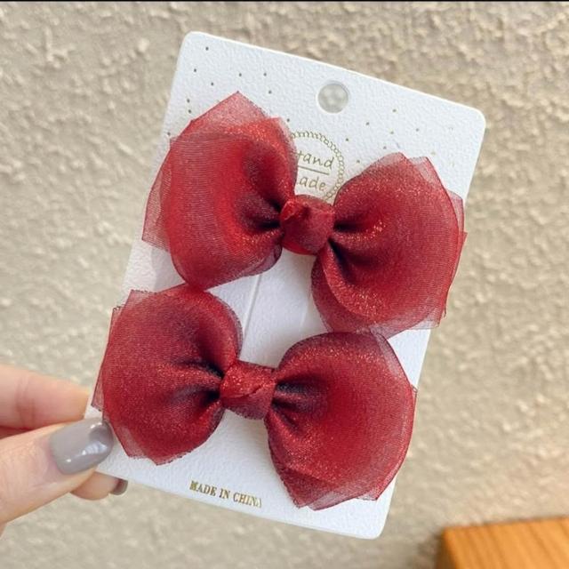 兒童蝴蝶結髮夾頭飾 髮夾 蝴蝶結 雙馬尾 雙辮子 女童 酒紅 小蝴蝶緞帶結髮夾