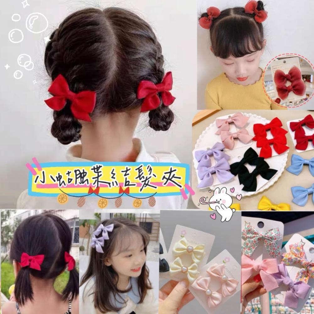 兒童蝴蝶結髮夾頭飾 髮夾 蝴蝶結 雙馬尾 雙辮子 女童 酒紅 小蝴蝶緞帶結髮夾