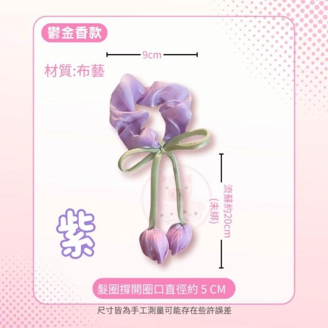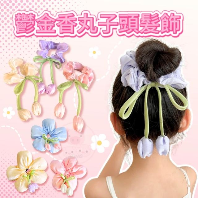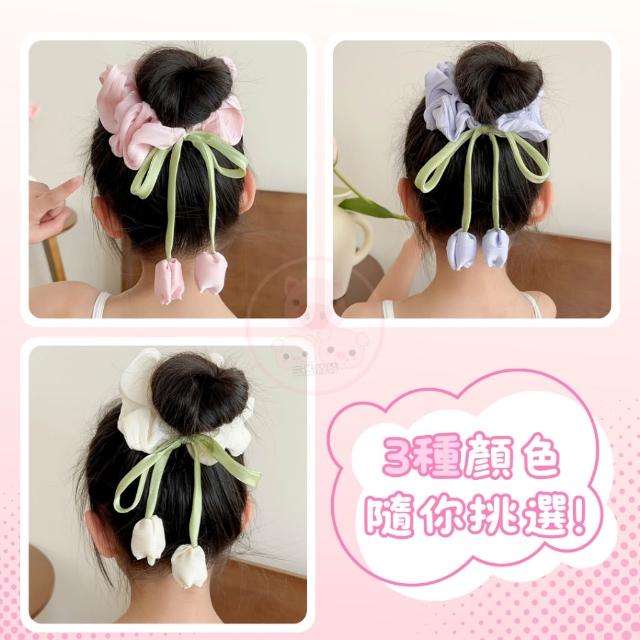 花朵髮圈【鬱金香丸子頭髮飾】髮圈 大腸圈 髮帶 髮飾 綁頭髮 包包頭 造型發圈 飄帶大腸髮圈 森系頭飾大腸髮圈