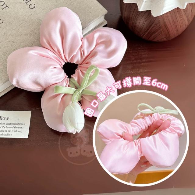 花朵髮圈【鬱金香丸子頭髮飾】髮圈 大腸圈 髮帶 髮飾 綁頭髮 包包頭 造型發圈 飄帶大腸髮圈 森系頭飾大腸髮圈