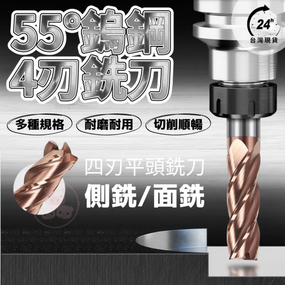 55度鎢鋼銑刀 硬質合金立銑刀 CNC 4刃塗層平底刀 不鏽鋼鋼件銑刀 1-10mm